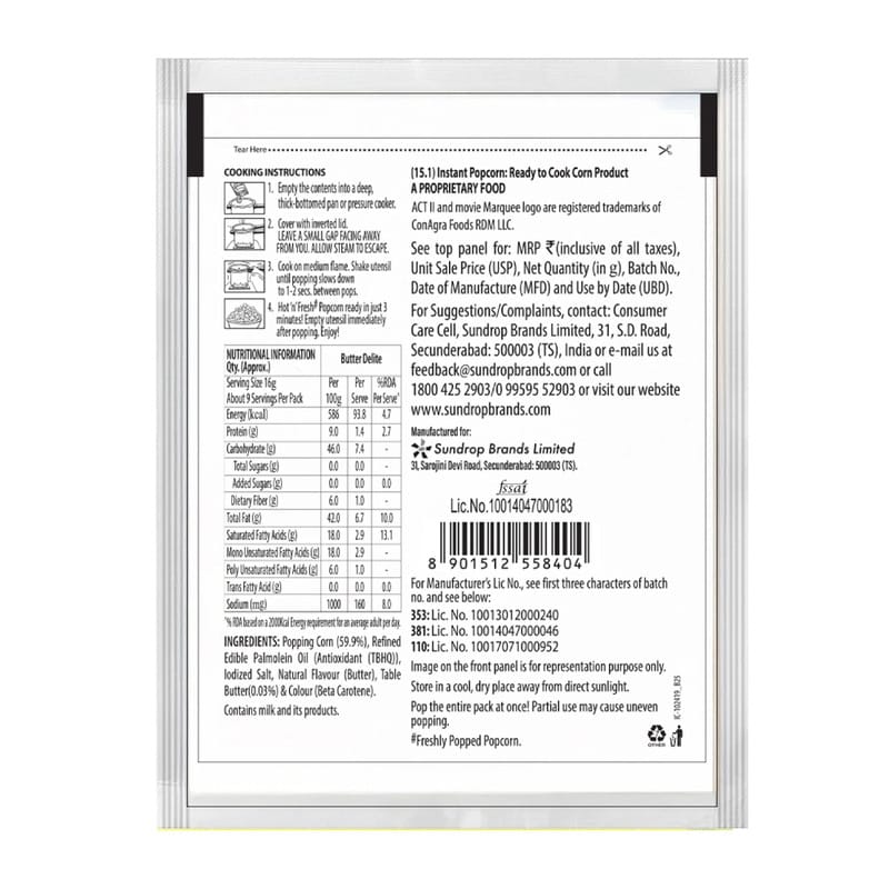 ACT II Instant Popcorn Butter Delite, Net Weight: 450g.