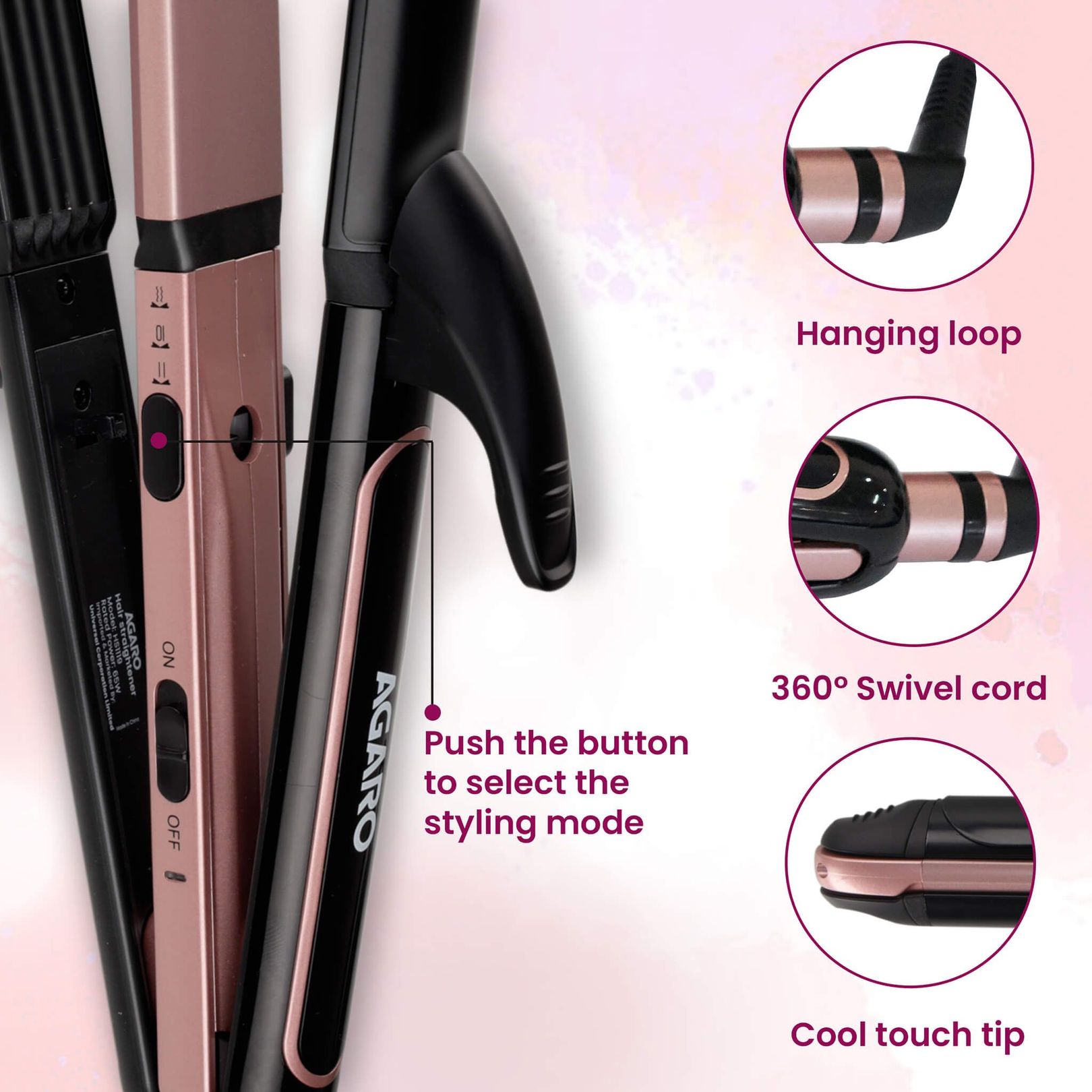65f04fa57a427cb1e4bdbd6aAGARO 3 in1 hair straightener HS1119AGARO 3 in1 hair straightener HS1119