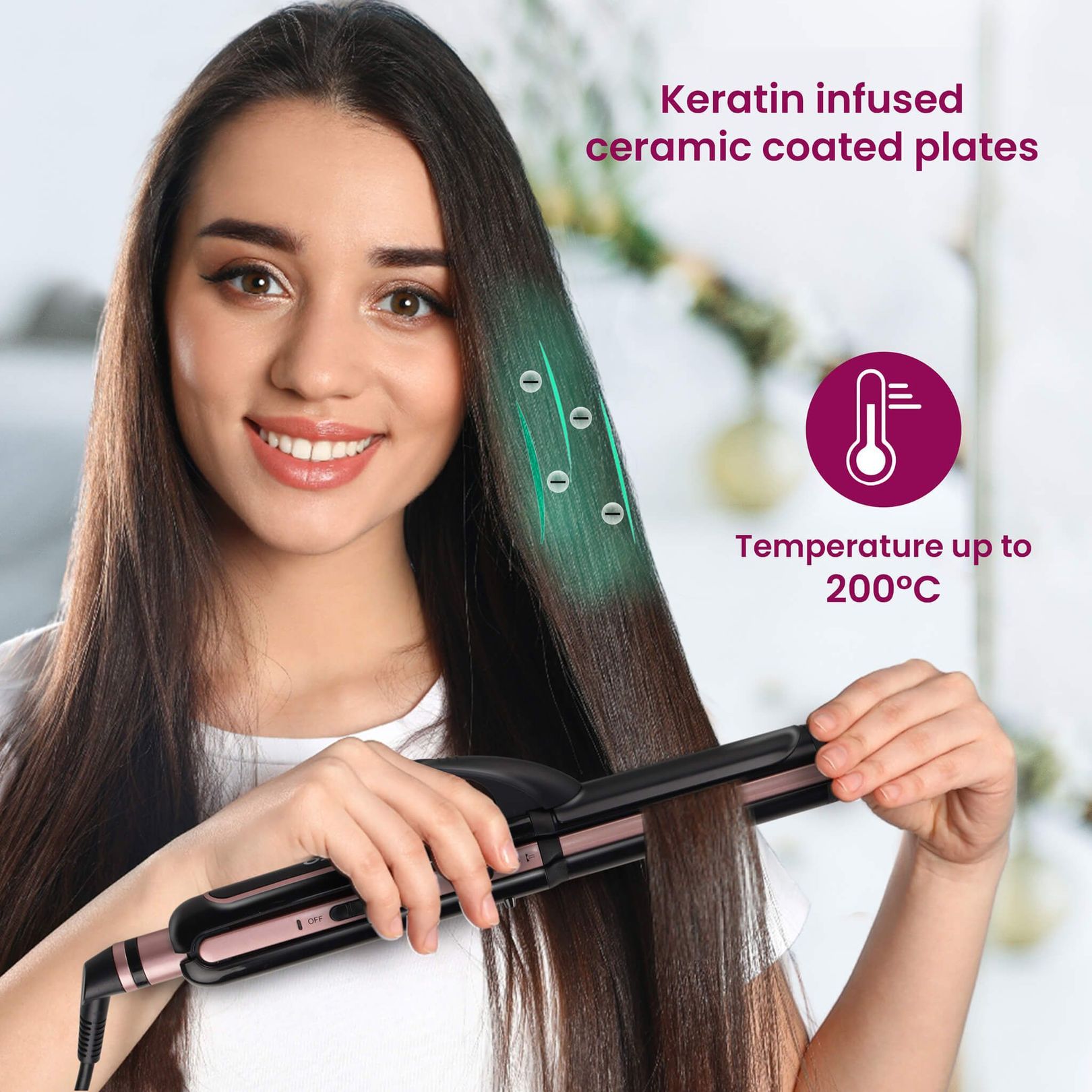 • Keratin-Infused ceramic coated Plates for a Silky smooth Finish