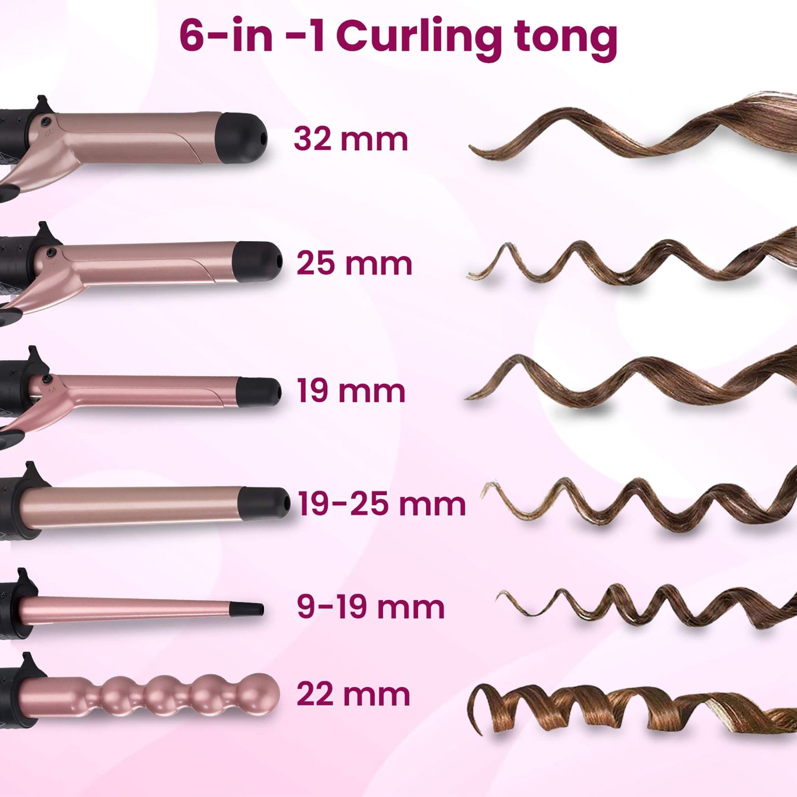 6 in1 hair interchangeable curling barrel set- 32 mm, 25mm, 19mm with clip-9-19mm, 19-25mm, 22mm