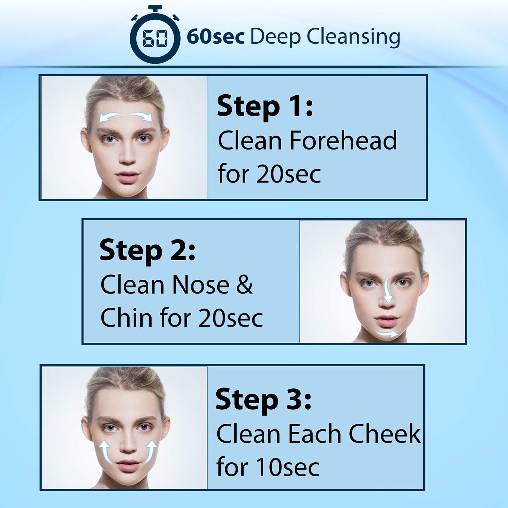 Silicone exfoliator brush head, gently massage oily t-zones and helps to clear clogged pores
