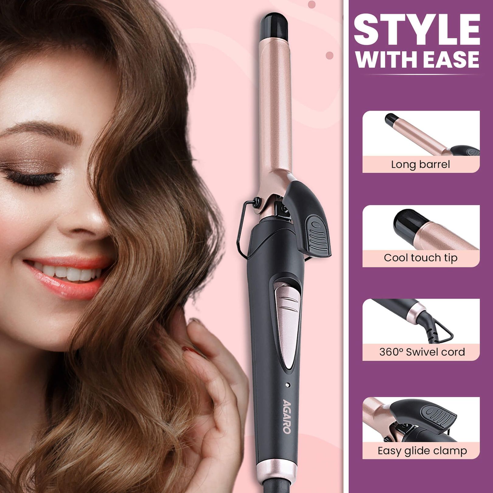 • 25 mm barrel for hair curling and styling