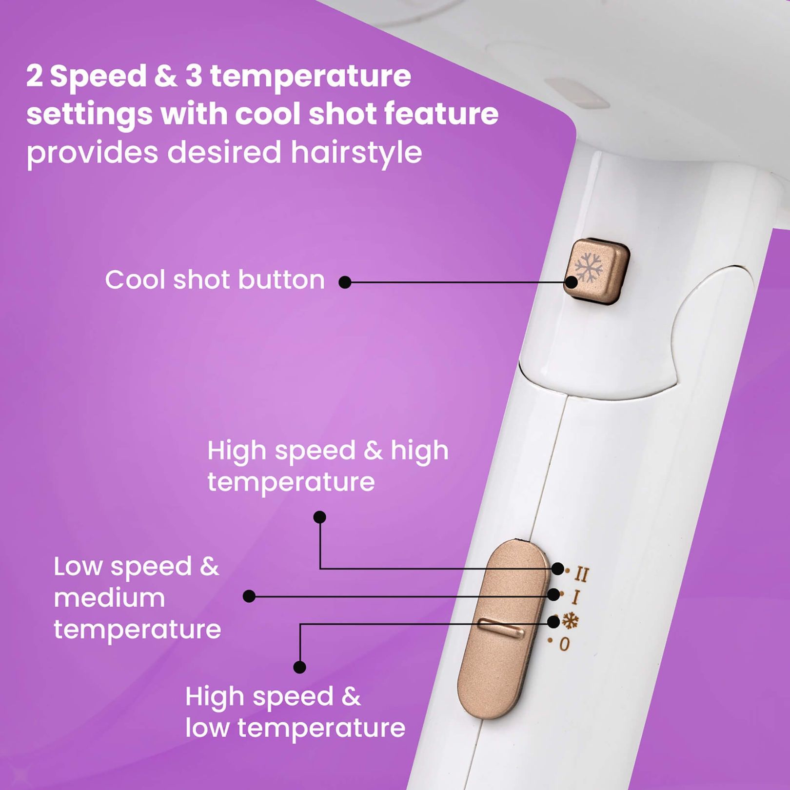 • 2 Speed 3 Temperature Settings with Cool Shot button