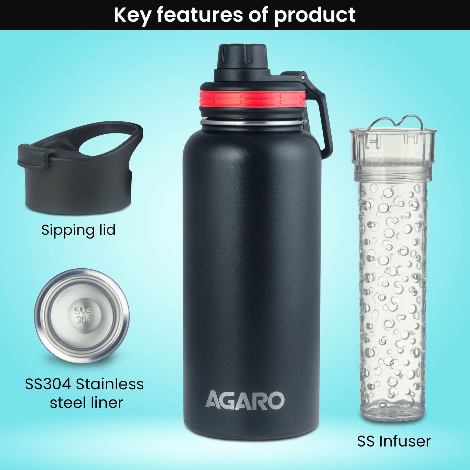 AGARO Imperial Vacuum Flask 1L, Tritan Infusion