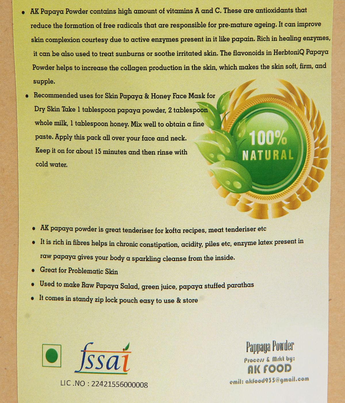 The flavonoids in HerbtoniQ Papaya Powder helps to increase the collagen production in the skin, which makes the skin soft, firm, and supple.