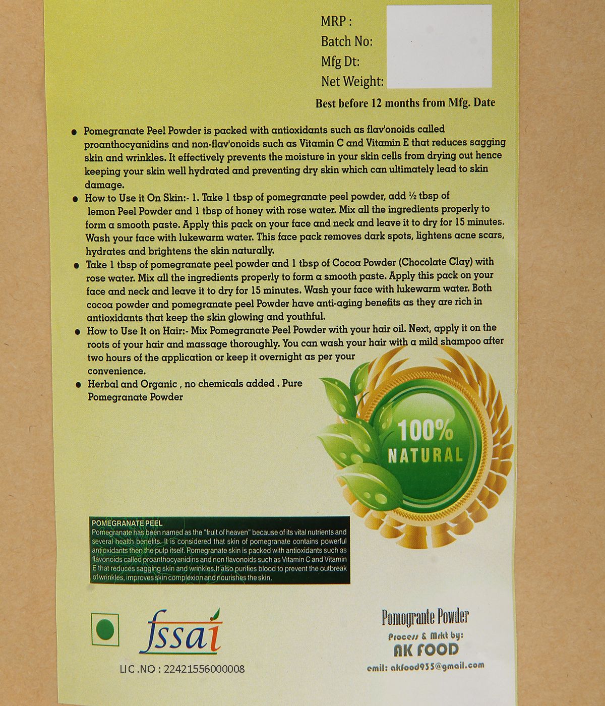 It is considered that skin of pomegranate contains powerful antioxidants then the pulp itself.