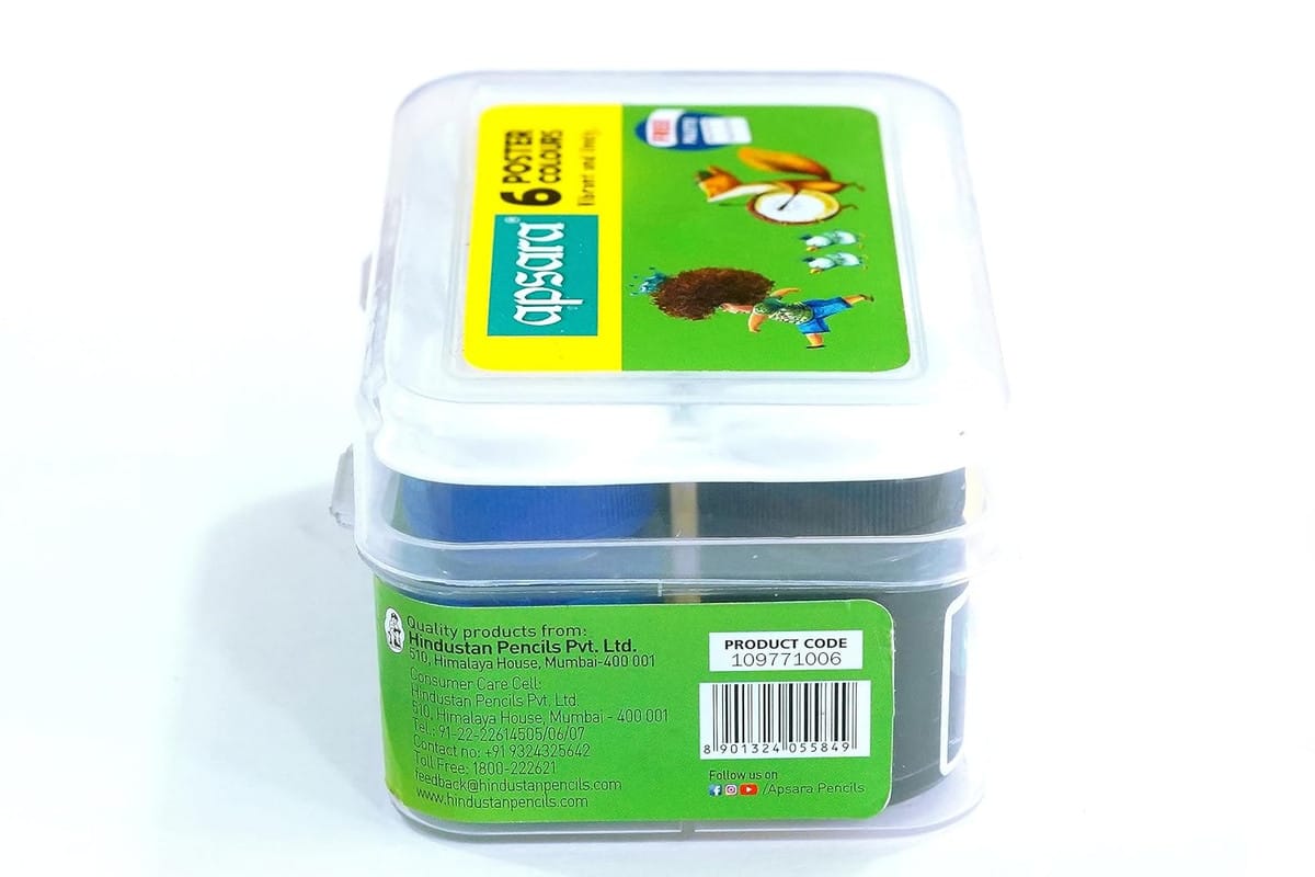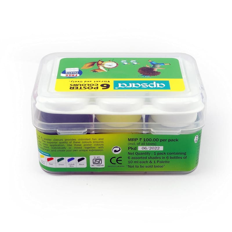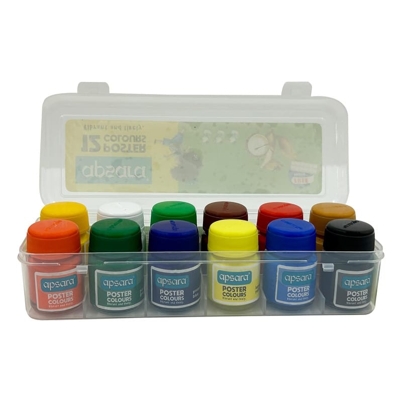 Description: Apsara Poster Colours are high-quality, vibrant paints that are ideal for artists, students, and hobbyists. These water-based colours are easy to mix, quick-drying, and offer excellent coverage, making them perfect for various artistic projects. Whether you're painting on paper, cardboard, or canvas, Apsara Poster Colours deliver rich hues and smooth application.