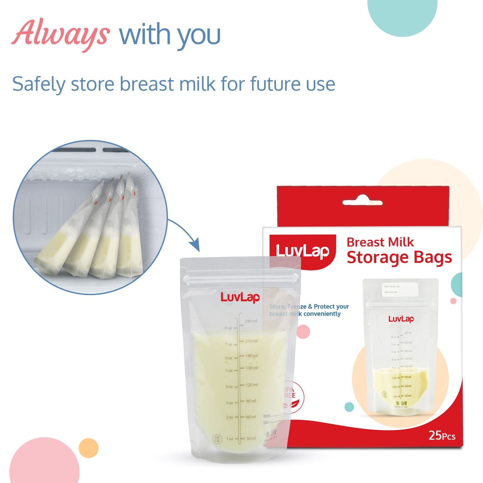 LuvLap Baby Breast Milk Storage Bags, BPA Free Disposable Milk Freezer Bags for Breast Feeding (Pack of 25? Bags)