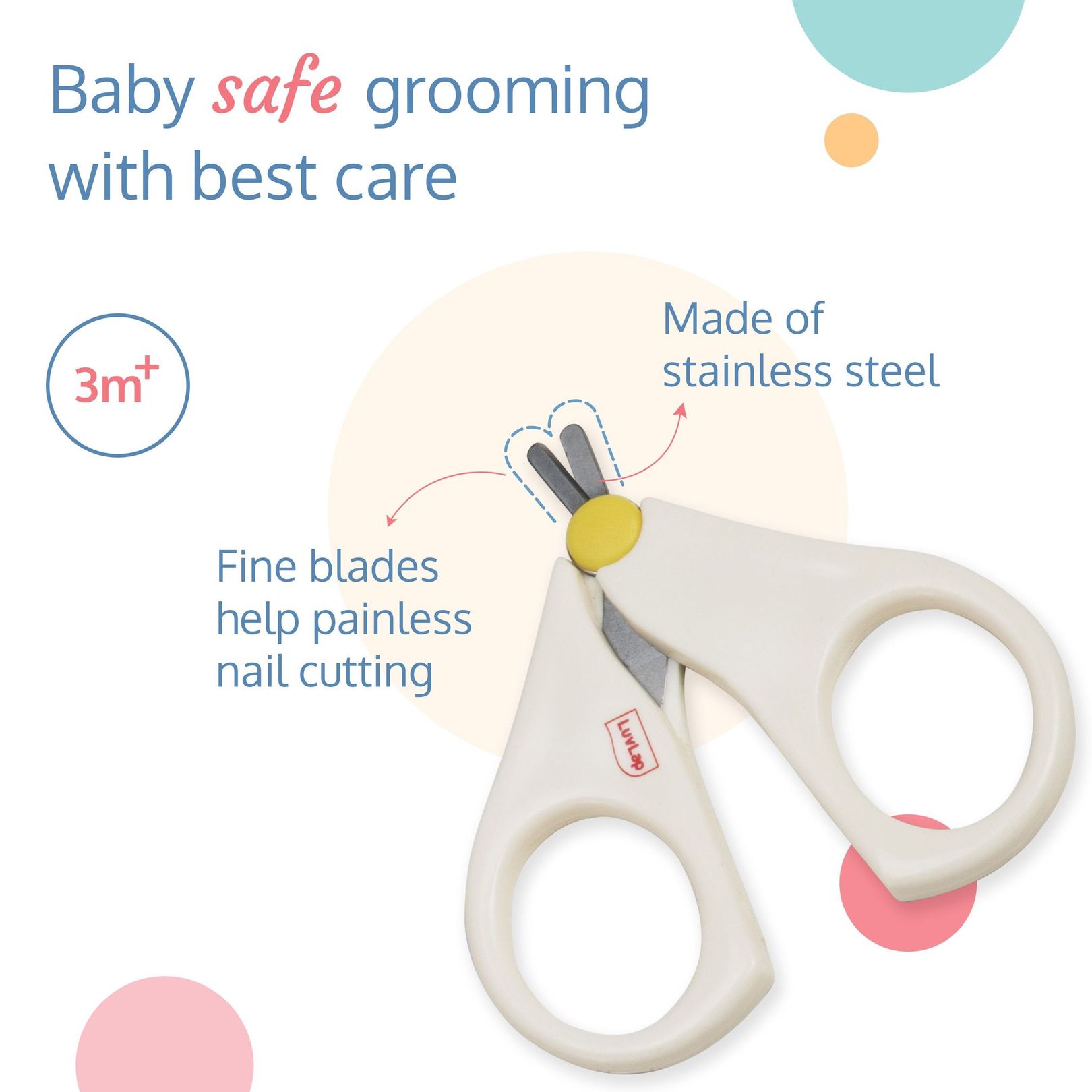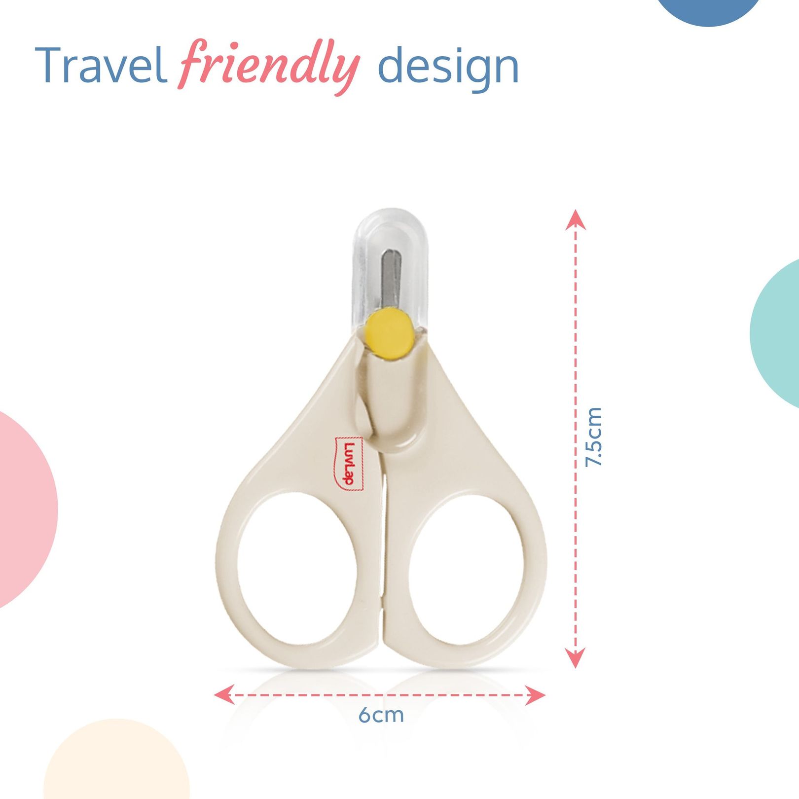 LuvLap baby nail scissors come with stainless steel blades, convenient easy grip. Includes blade cover.