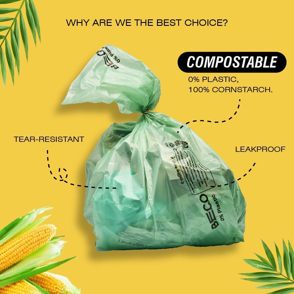 Made from PSM (Plastarch material), using cornstarch100% compostable & 100% biodegradable garbage bags3x stronger & Leak proof Can be used for dry/wet waste & for diaper disposal Leaves no toxic residue in the environmentBE-CO-009