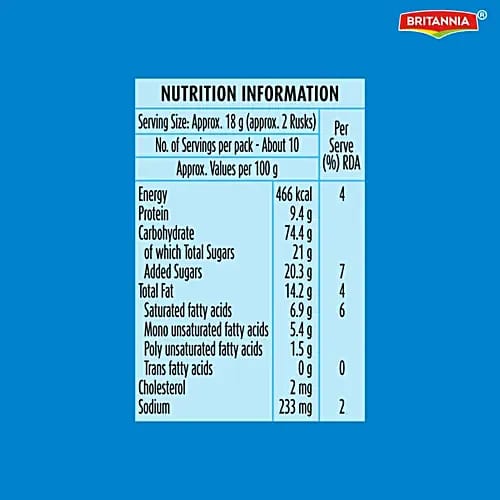 Each serving of Britannia Biscuit Milk Rusk contains: