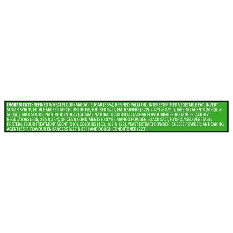 Refined Wheat Flour (Maida), Sugar, Edible Vegetable Oil, Guava Flavour, Chilli Extract, Iodised Salt, Raising Agents (INS 503(ii), INS 500(ii)), Emulsifiers, and Permitted Food Colours and Flavours.