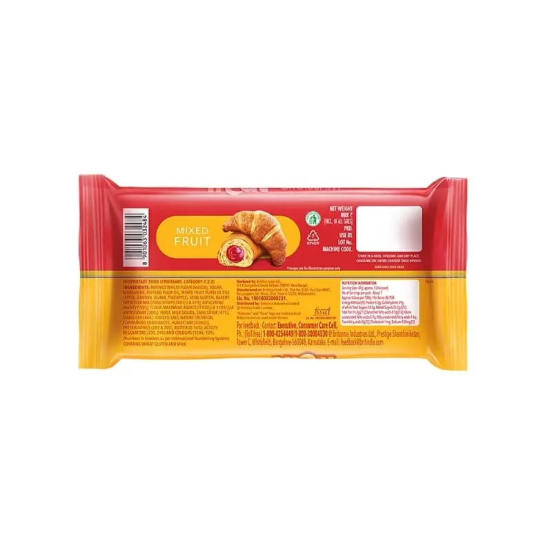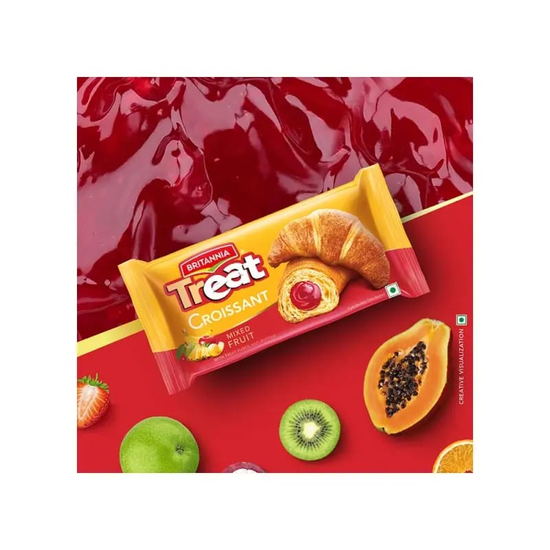 Britannia Treat Croissant with Mixed Fruit Creme Filling is a soft and fluffy pastry filled with a delicious mixed fruit-flavored creme. This delightful treat brings together the perfect blend of sweetness and fruity goodness in every bite, making it an irresistible snack option for any time of the day. Perfect for tea-time, kids' lunchboxes, or on-the-go snacking!