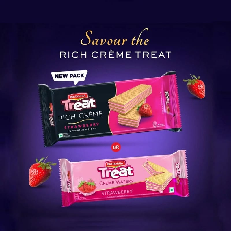 Indulge in the irresistible taste of Britannia Treat Rich Creme Strawberry Flavoured Wafers. These crispy wafers are filled with smooth, creamy strawberry-flavored filling, creating a perfect balance of crunch and sweetness in every bite. Ideal for a quick snack or a sweet treat during tea-time, these wafers are a must-try for anyone who loves a delightful fruity flavor.