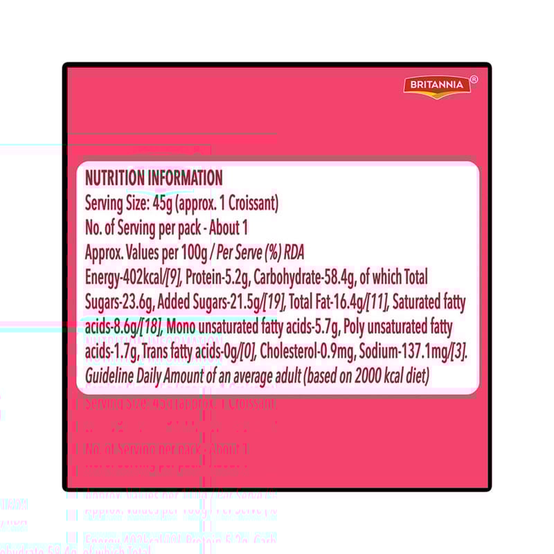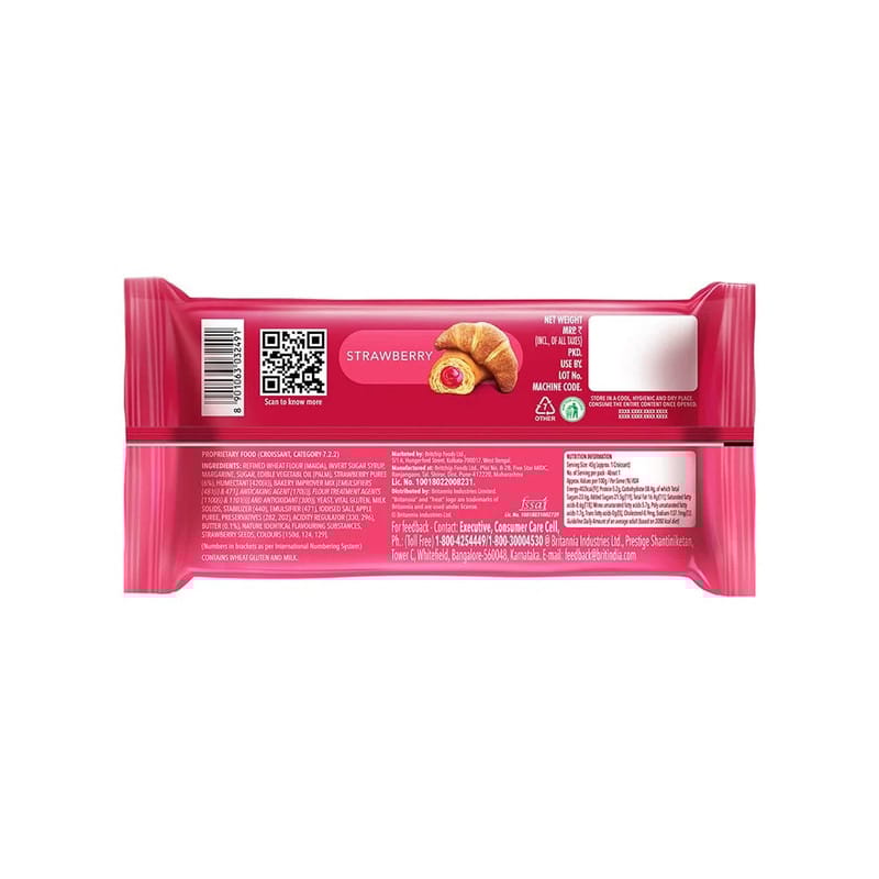 Britannia Treat Strawberry Croissant brings the perfect combination of a soft, flaky croissant filled with a sweet and tangy strawberry filling. The light and airy pastry offers a delightful treat, making it ideal for breakfast, snacks, or whenever you crave something sweet. Enjoy the freshness of strawberries with every bite, wrapped in a soft croissant layer!
