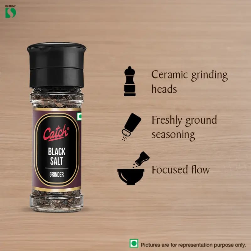 Catch Grinder Black Salt is a premium quality seasoning that enhances the taste of your dishes. Sourced from natural mineral-rich deposits, this black salt is perfect for seasoning salads, fruits, raitas, and chaats.