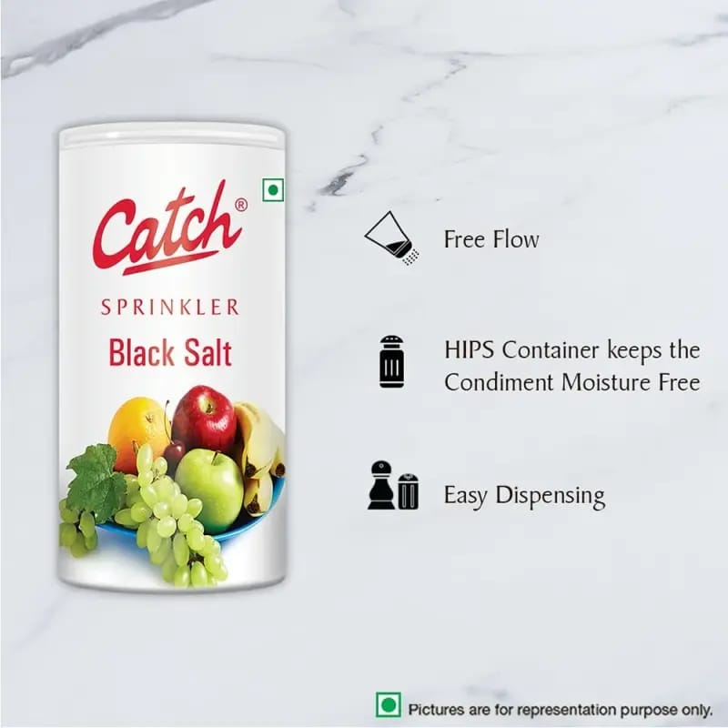 Catch Sprinklers Black Salt is a premium-quality seasoning known for its distinct tangy flavor and health benefits. It is widely used in Indian cuisine, particularly in chaats, raitas, and refreshing drinks.