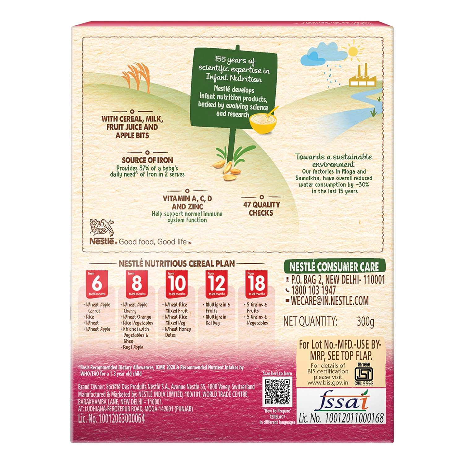 Nestle CERELAC Baby Cereal with Milk, Multigrain & Fruits is a complementary food for babies from 12 to 24 months. While infants and children have higher requirements of nutrients than adults, 2 serves of CERELAC Multigrain & Fruits Cereal provides 59% of a baby s daily need of protein. Rich in iron, it is also a source of 16 important nutrients including vitamins and minerals. Nestl develops infant nutrition products backed by evolving science and research. Innovation has been at the heart of Nestl since its beginning. Optimal Preparation: Careful and hygienic preparation of Infant food is most essential for health. Do not use fewer scoops than directed, since diluted feeding will not provide adequate nutrients needed by your infant. Do not use more scoops than directed since concentrated feed will not provide the water needed by your infant. Storage:After opening the pack, the contents should immediately be transferred to an empty, clean, dry and airtight container.Replace the lid tightly after every use and store in a cool, dry place. Ensure enclosed scoop is thoroughly washed and dried before use. After opening, use the contents within 3 weeks or the expiry date, whichever is earlier. Important Notice:Mother s milk is best for your baby. Safety Warnings: Infant food should be used only on the advice of a health worker as to the need for its use and the proper method of its use. Infant food is not the sole source of nourishment for an infant. Use prepared feed within half an hour otherwise microbial deterioration may set in. Discard unused feed.