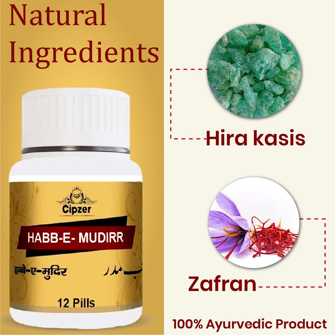 Cipzer Habb-E-Mudirr Pills are useful in amenorrhea and dysfunctional uterine bleeding. It provides tonicity to uterine muscles and restores menstrual regularity.