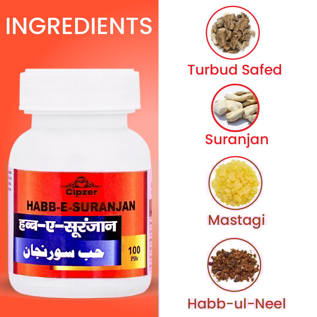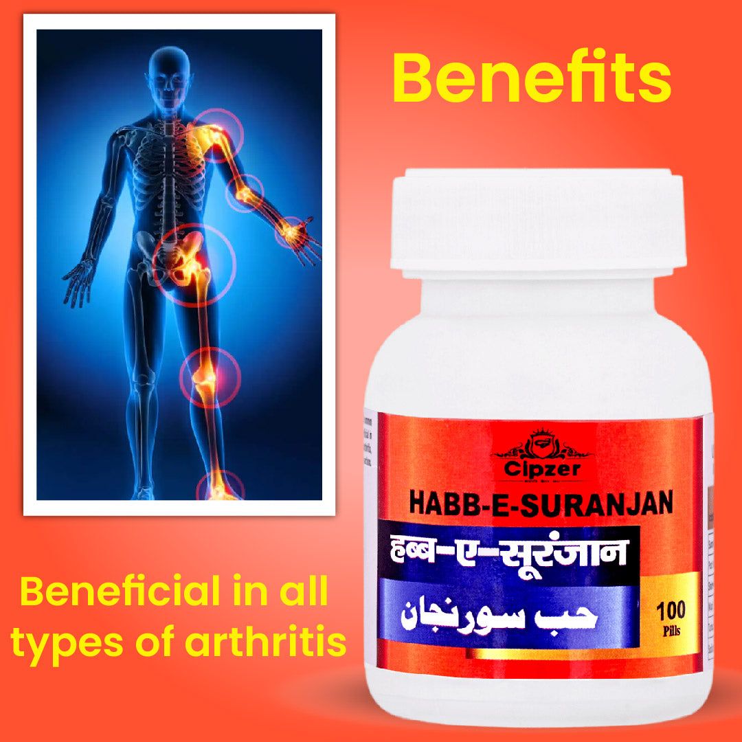 Cipzer Habb-E-Suranjan Pills is an unani medicine that helps manage rheumatoid arthritis, osteoarthritis, and gout. It has analgesic and inflammatory action to help relieve joint pain.