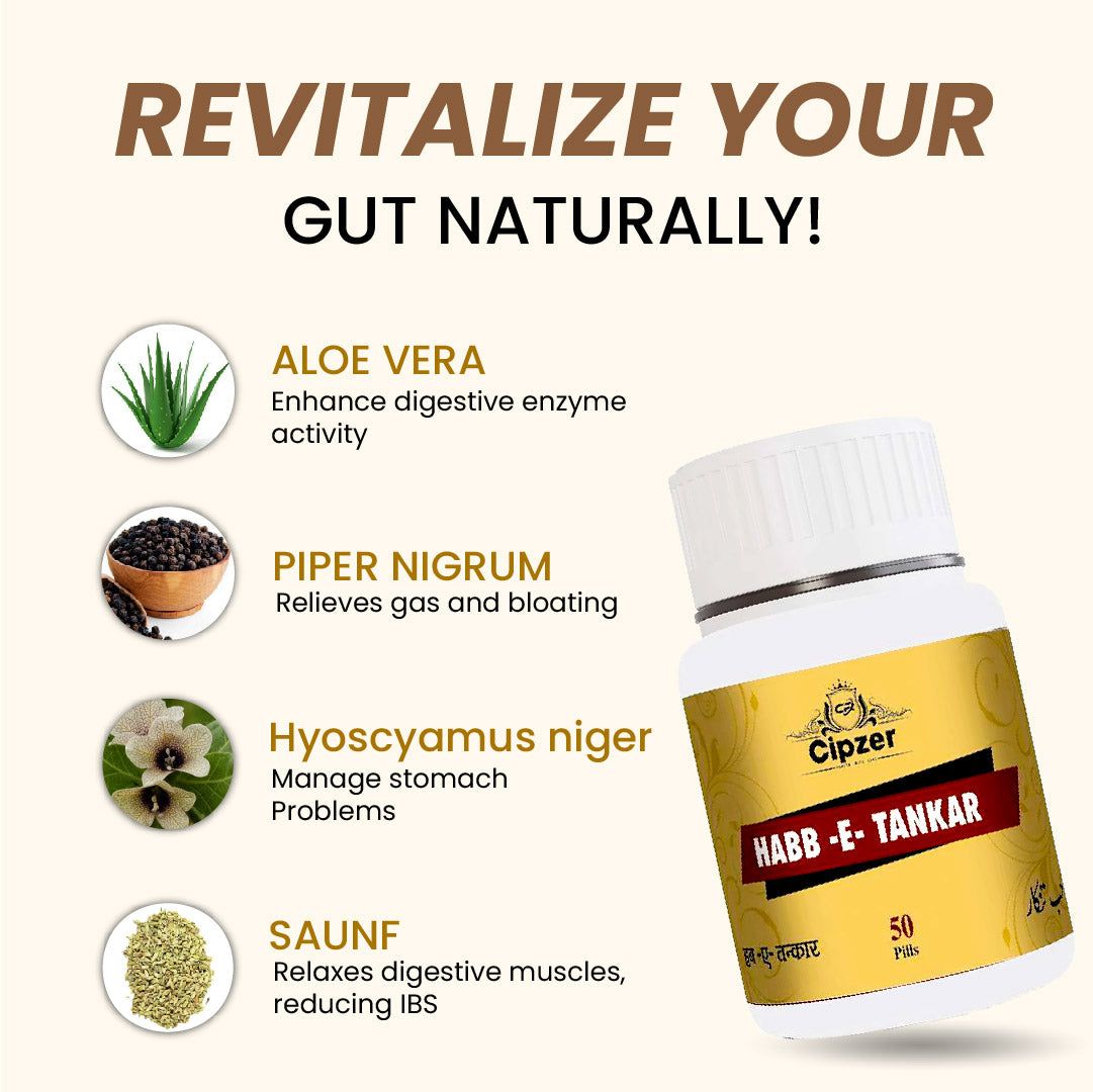 Habb-e-Tankar helps to remove heaviness as well as weakness of the stomach, boosts appetite, aids in anorexia, gas, and chronic constipation, relieves flatulence, and relieves stomach aches. This completely natural formulation is made using premium quality Ayurvedic ingredients that are highly effective and beneficial to health.