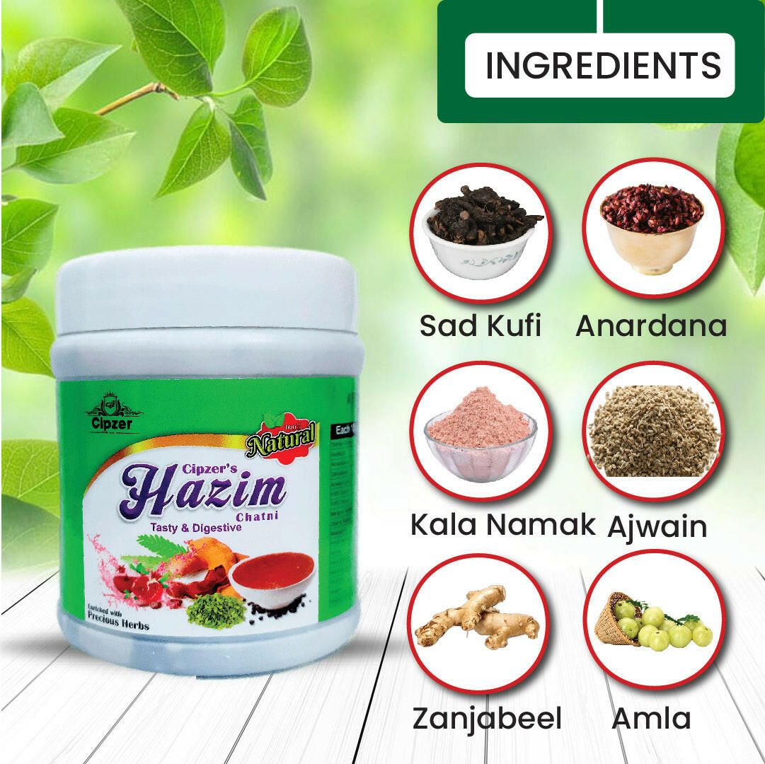 Cipzer Hazim Chatni is a tasty, digestive chatni that enhances the digestive system. It is a mixture of traditional Indian culinary herbs, spices, and edible salts that enhance digestion in the stomach.
