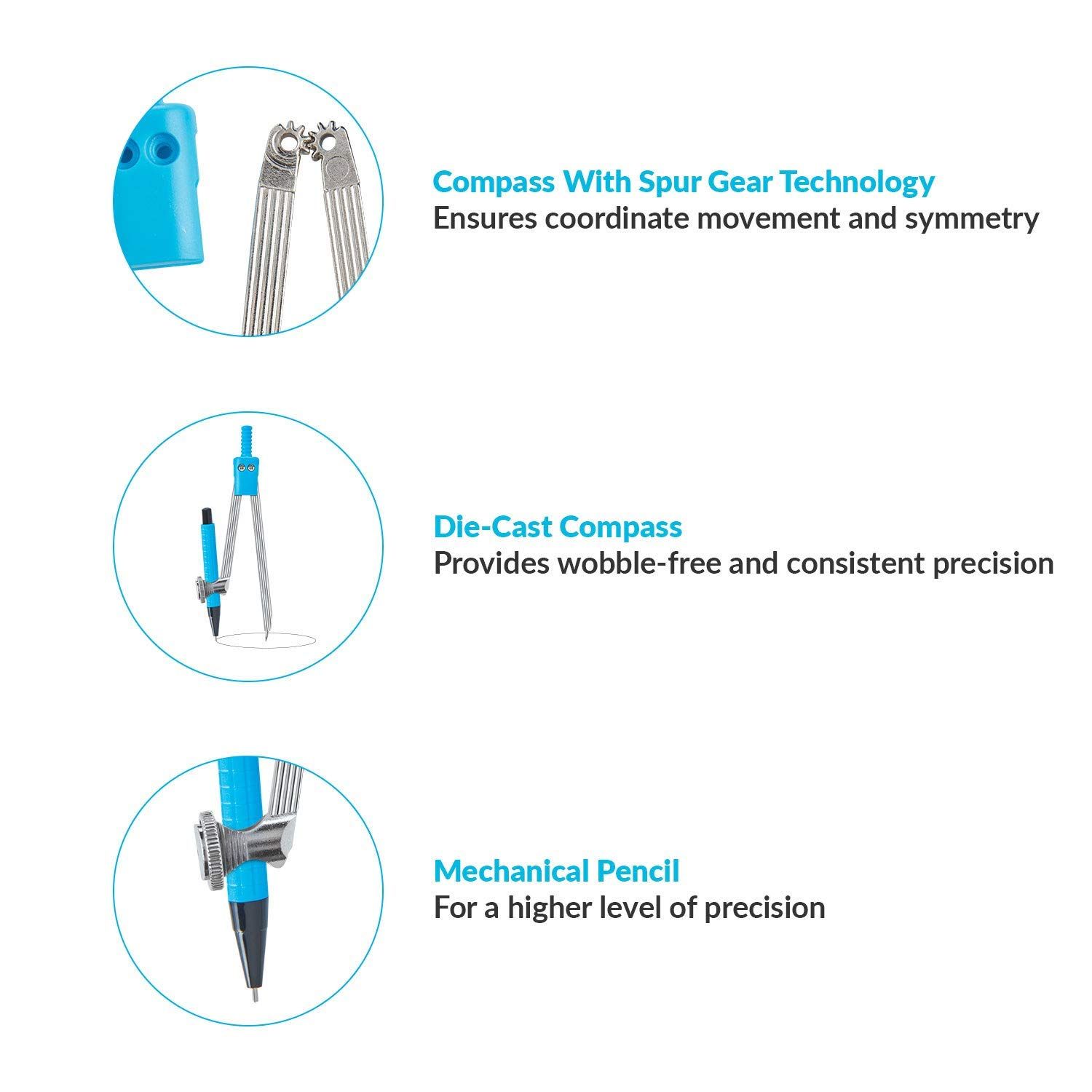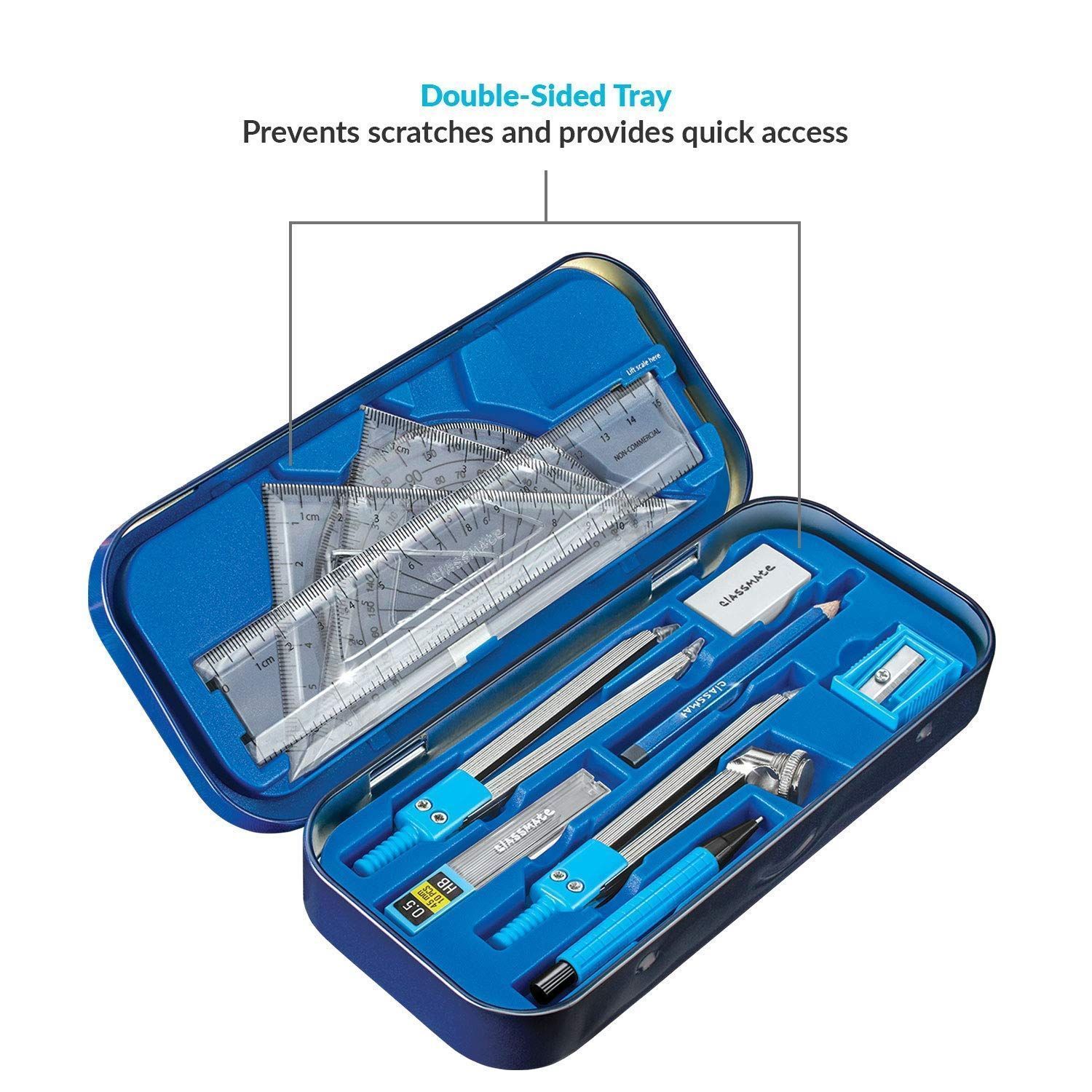 Classmate Archimedes Geometry Box is an ideal box that contains all the tools required for basic geometric use. The set consists of a compass, divider, ruler, protractor, and set square along with a sharpener, eraser, and a mechanical pencil that comes nicely packed in a tin compass box. Buy this product online today and get all your child's geometric needs covered.