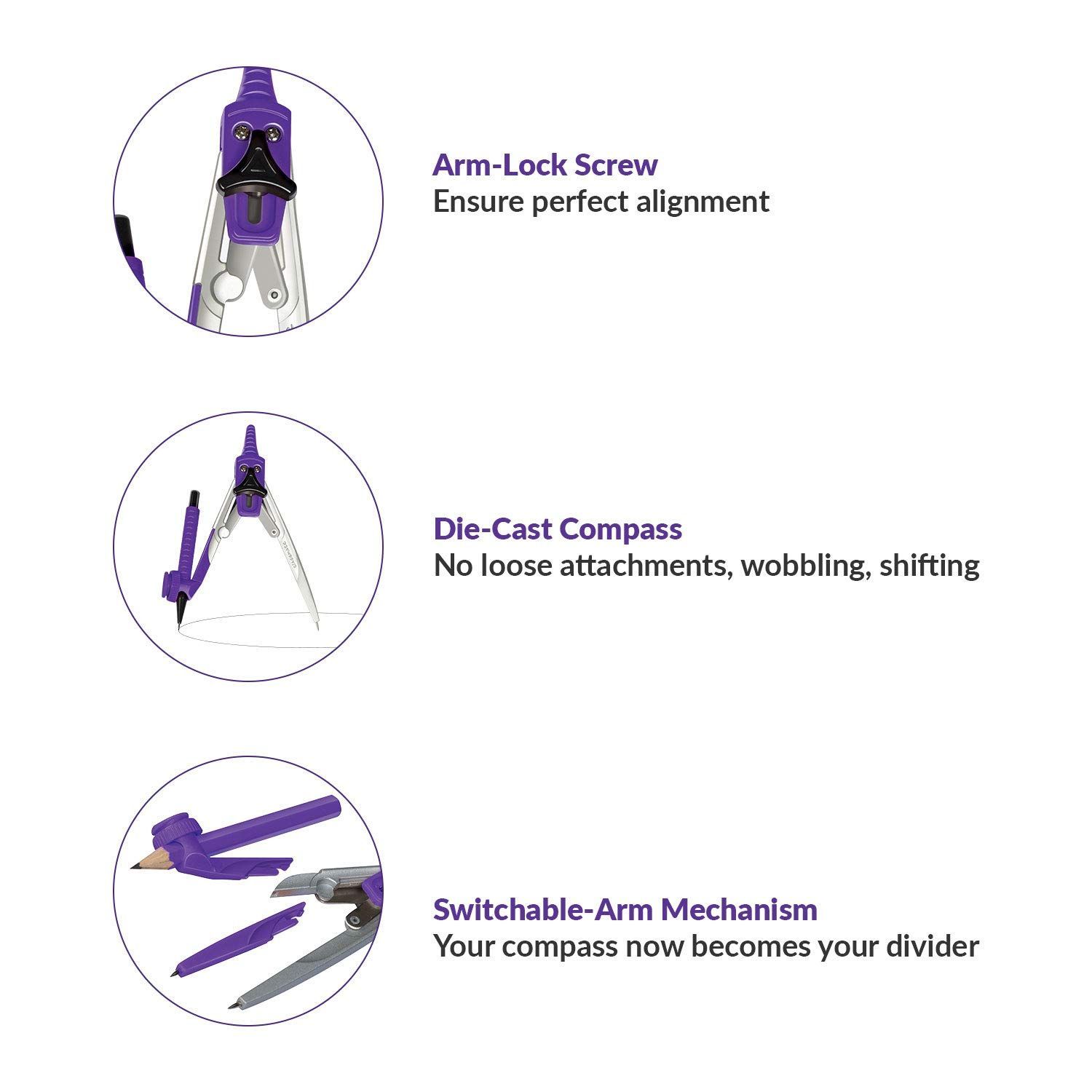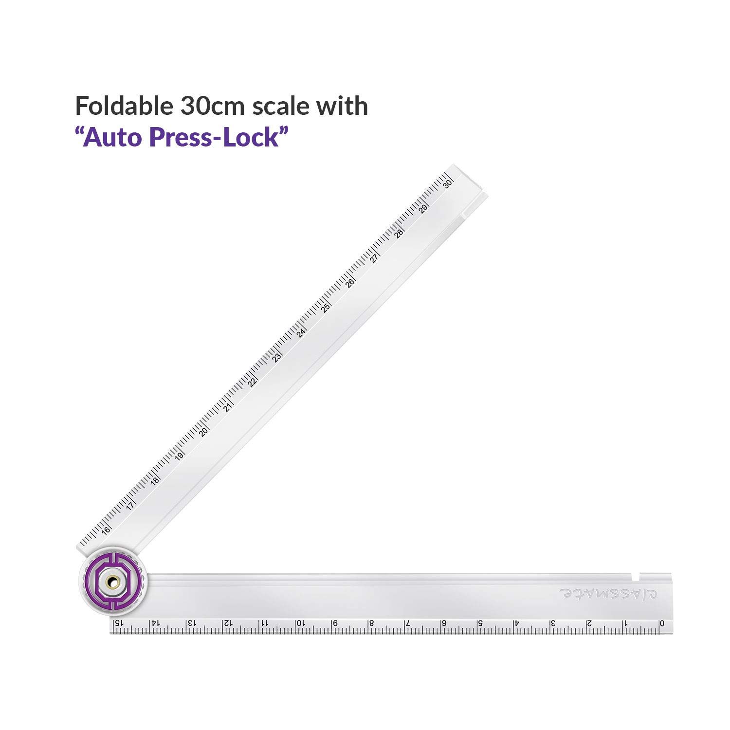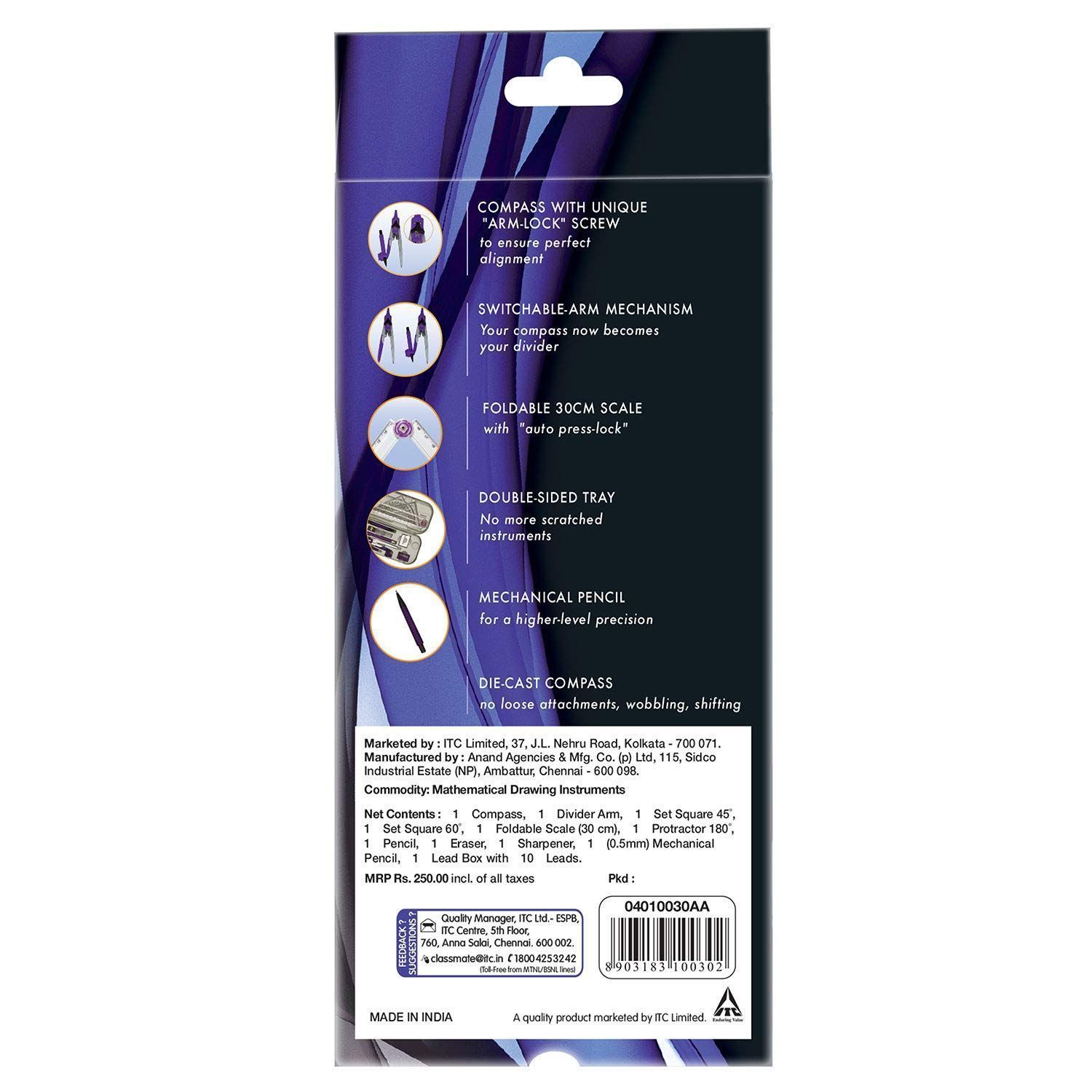 Classmate Asteroid Geometry Box, a collection of the best quality mathematical precision instruments.It is ideal for kids.Die-casted, Self-centering compass and divider for un-matched and consistent precision.