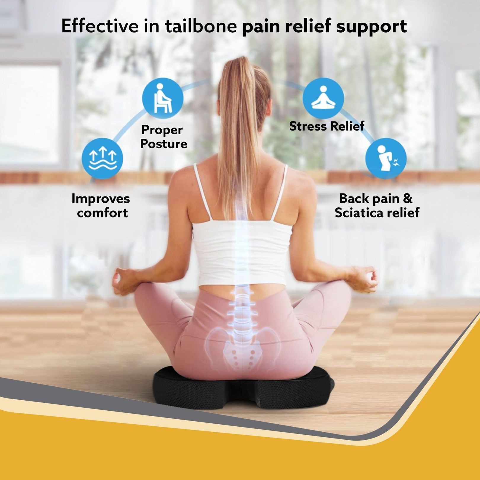 AGARO Coccyx Seat Cushion Orthopedic Memory Foam Coccyx Seat Cushion for Tailbone, Sciatica, Lower Back Pain Relief-Ergonomic Contoured Cushion for Office/Home Chair & Wheelchair, Black