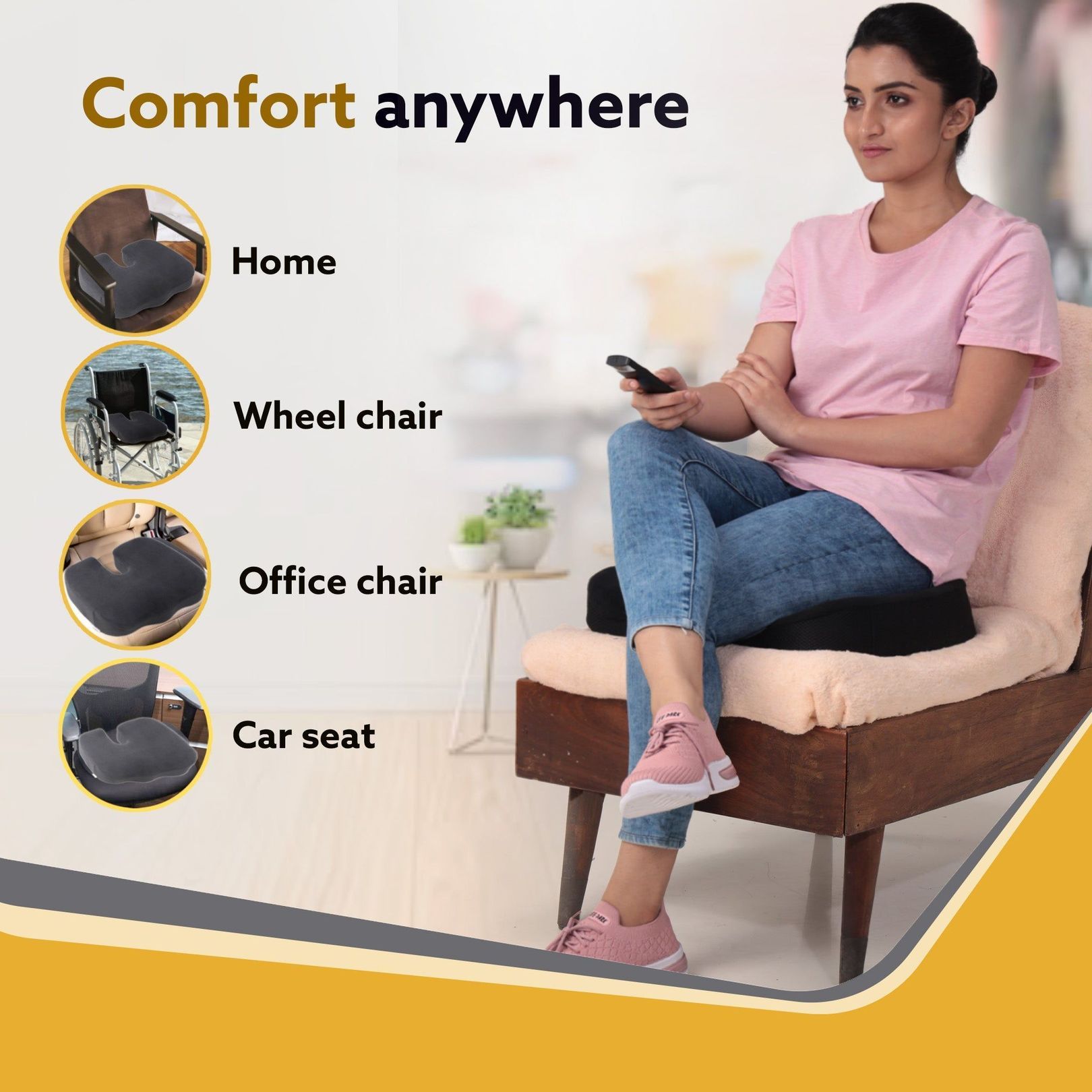 Made from premium memory foam, the coccyx cushion slowly rebounds and regains its original shape after each use. The cushion provides all-day comfort, and the foam doesn't get flatten even after spending long hours sitting on it