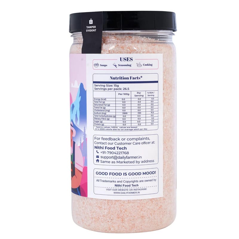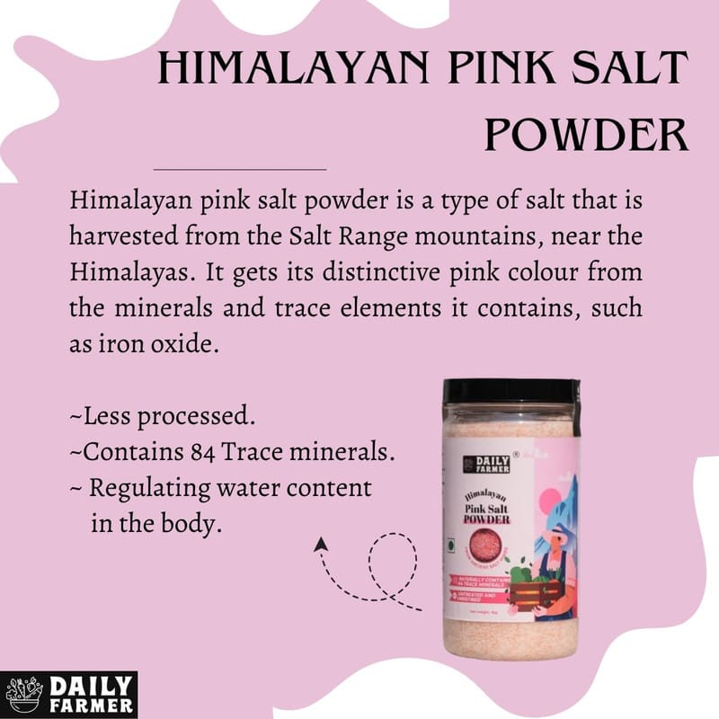 Daily Farmer Himalayan Pink Rock Salt Powder is a pure and natural mineral-rich salt, carefully sourced from the foothills of the Himalayas. It is free from any chemicals or additives, making it a healthier alternative to regular table salt. This gourmet-grade salt enhances the flavor of your dishes while providing essential minerals for overall well-being.