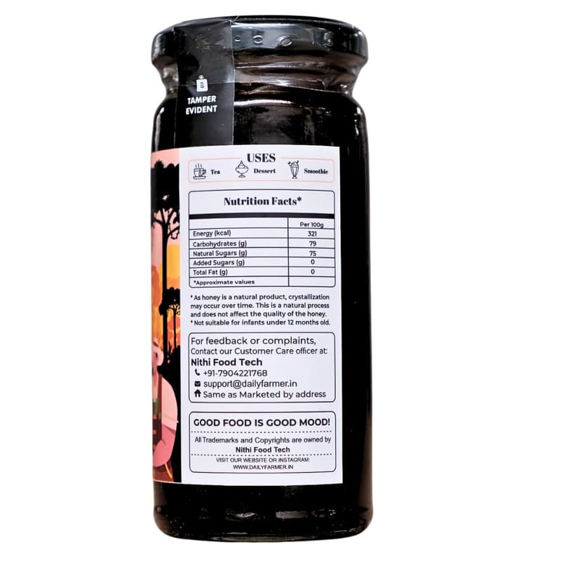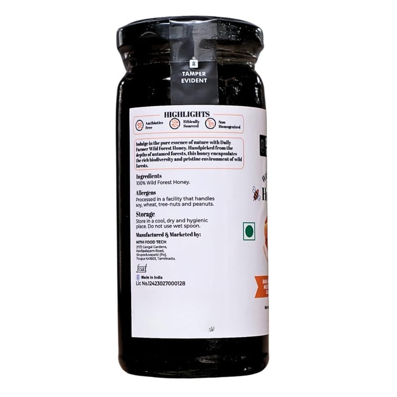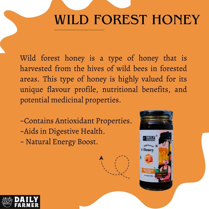 Daily Farmer Wild Forest Honey is harvested from deep forests, ensuring purity and authenticity. It is 100% raw, meaning it retains all its natural enzymes, antioxidants, and nutrients. Unlike commercial honey, it is unprocessed and unpasteurized, keeping all its health benefits intact. This honey serves as an excellent immunity booster and a natural alternative to sugar, making it perfect for a healthy lifestyle.