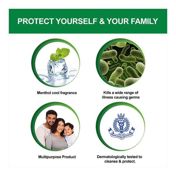 Dettol Disinfectant Multipurpose Liquid Cleaner protects you and your family against illness-causing germs. This disinfectant liquid sanitizes your home and also helps maintain your personal hygiene. It can be used in the bath, laundry, floor, and surface cleaning, leaving everything clean and fresh. This multipurpose disinfectant cleaner for the home is recommended by the Indian Medical Association. USAGE: Recommended dilutions to protect your family from germs: Bathing - 1 capful to a bucket of water (10 litres); Kitchen Slab - 1 capful to a litre of water; Shaving - 1 capful to a litre of water; Floor Cleaning - 1 capful to a litre of water; Laundry - 1 capful to a litre of water in the last rinse; Refrigerator - 1 capful to a litre of water.