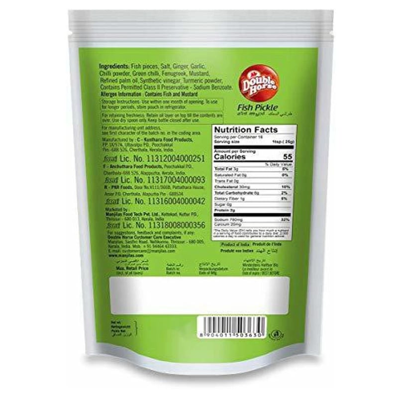 Double Horse Fish Pickle brings the homely, layered spice profile of traditional pickles to your table spicy, tangy and richly aromatic, with real fish pieces that make every bite satisfying.