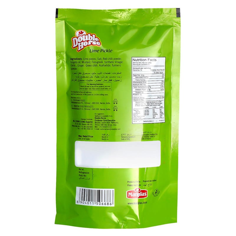 Double Horse Lime Pickle brings the bold, addictive flavours of homemade Indian pickle to your table. Made from carefully selected limes and an authentic spice blend, it adds a citrusy punch and warming heat to everyday meals.