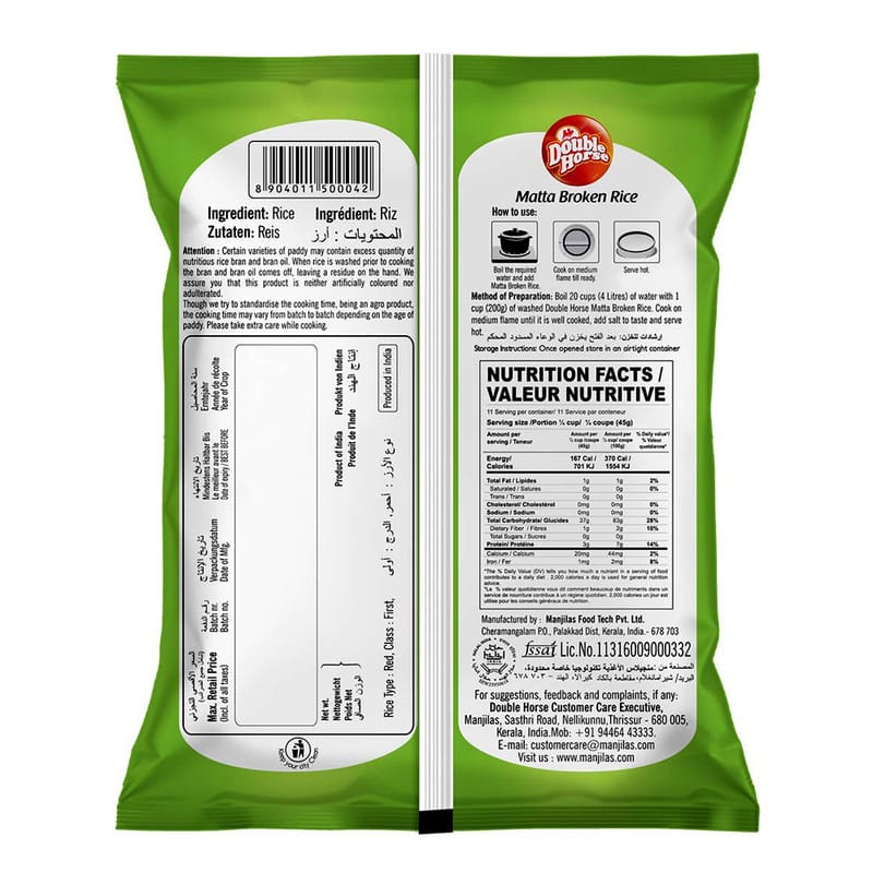 Double Horse Matta Broken Rice farm-fresh taste, quicker cooking. Retains the wholesome flavour and texture of Matta rice in a convenient broken form. Perfect for daily meals and traditional recipes.