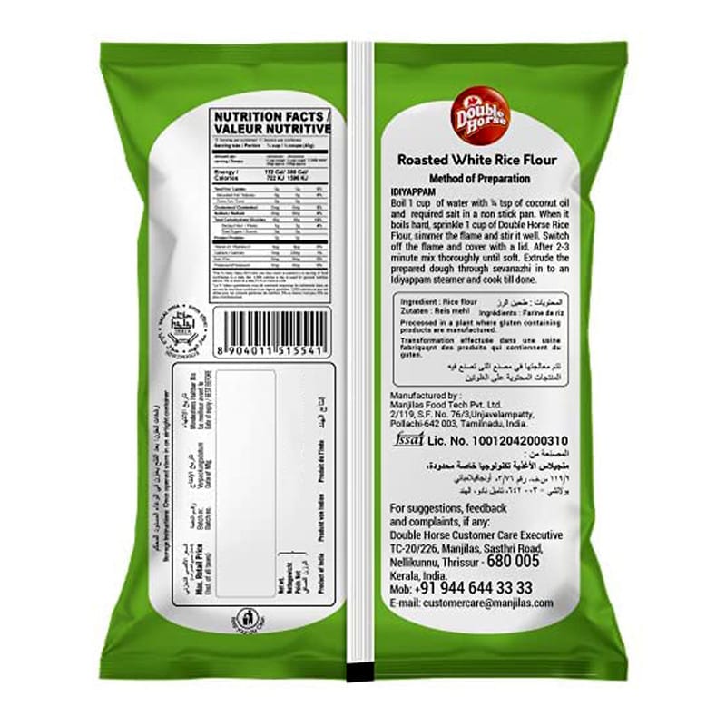 Double Horse White Rice Flour is made from carefully selected, high-quality white rice, finely milled to ensure smooth texture and superior taste. Ideal for preparing a variety of traditional and modern recipes such as idiyappam, appam, dosa, and snacks. This flour is naturally gluten-free, making it a healthy choice for all.