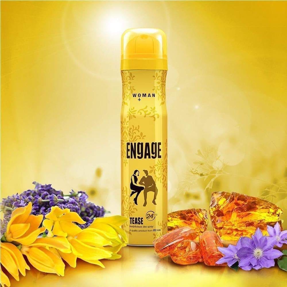 Nobody likes a tease. Or do they? Here? ??s your chance to tease him like never before. Tease by Engage, a Feminine interpretation of a classic fragrance. Quantity: 150ml/110ml Item Form: Spray Tease by engage, a feminine interpretation of a classic fragrance Are you ready to be called a tease Usage: Give it a good hard shake first to make sure all the ingredients are mixed together before you spray it. You should hold the can approximately 15cm from your body or clothes as you spray it. Target Audience: Women Package Contents: 1 Deodorant