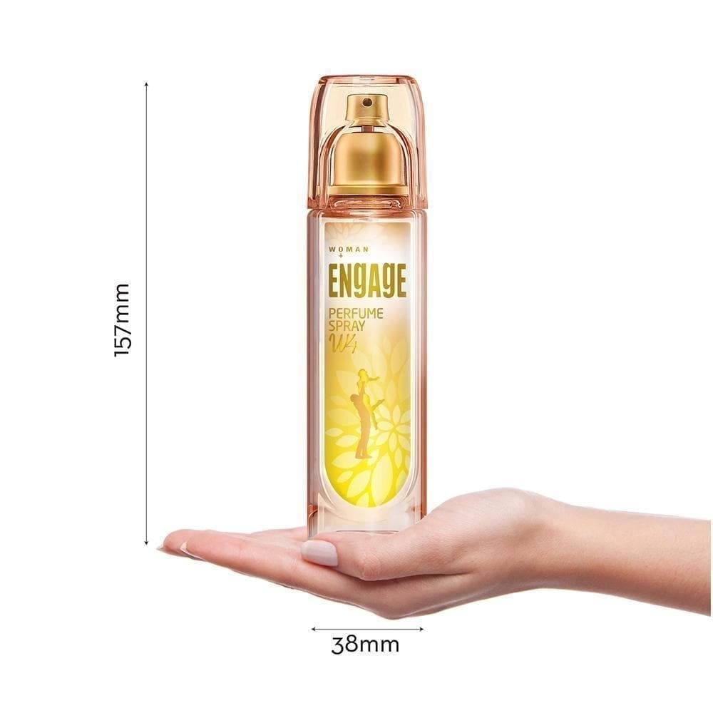 W4 Perfume Spray For Women - Engage w4 offers the sweet energy of vanilla, red berries, peony, praline and candied apple. Quantity: 120ml Item Form: Spray Long lasting fragrance that provides 24 hours of effect It will remind you of a fair in Germany on a winter evening Usage: Give it a good hard shake first to make sure all the ingredients are mixed together before you spray it. You should hold the can approximately 15cm from your body or clothes as you spray it. Target Audience: Women Package Contents: 1 Perfume Spray