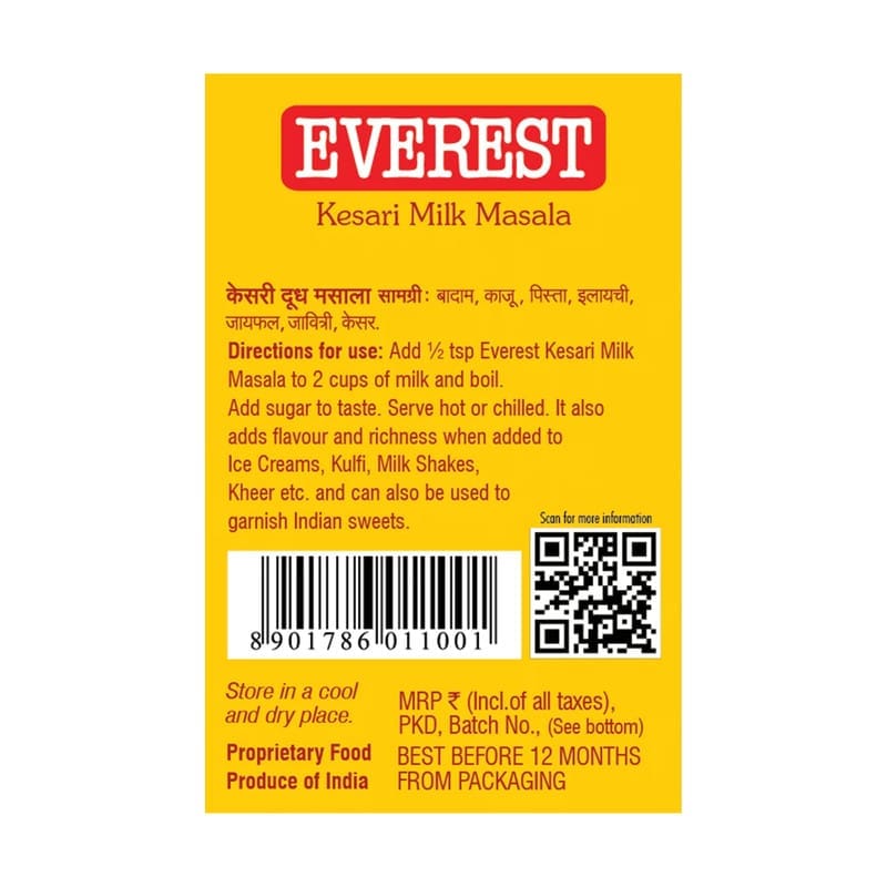 Everest Kesari Milk Masala is a rich, aromatic blend of traditional spices designed to enhance the flavor of your milk. With a unique mix of saffron, cardamom, and other premium spices, this masala adds a touch of royalty to your daily cup of milk. Ideal for preparing Kesari Milk or for flavoring your milkshake, this masala is a perfect treat for all ages. Experience the warmth and richness of homemade delicacies with just a pinch of Everest Kesari Milk Masala.