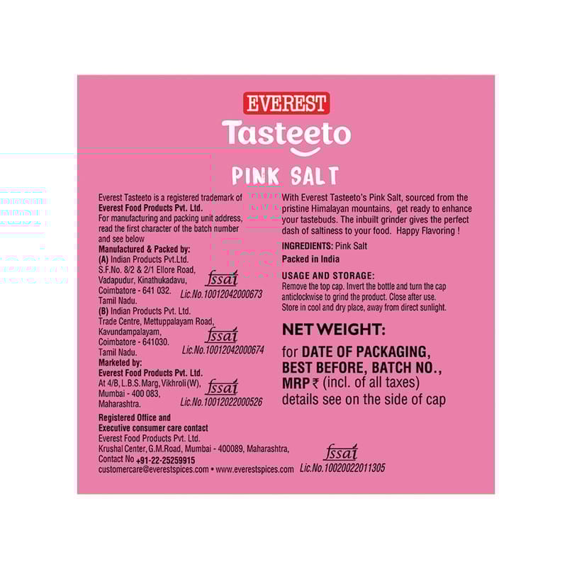 Everest Tasteeto Pink Salt is a premium quality salt that is naturally rich in essential minerals and has a unique pink color. Sourced from the pristine mines, this pink salt is packed with trace minerals and has a milder taste compared to regular table salt, making it perfect for enhancing the flavor of your favorite dishes. It s ideal for use in cooking, seasoning, and as a garnish to add a delightful touch to your meals.