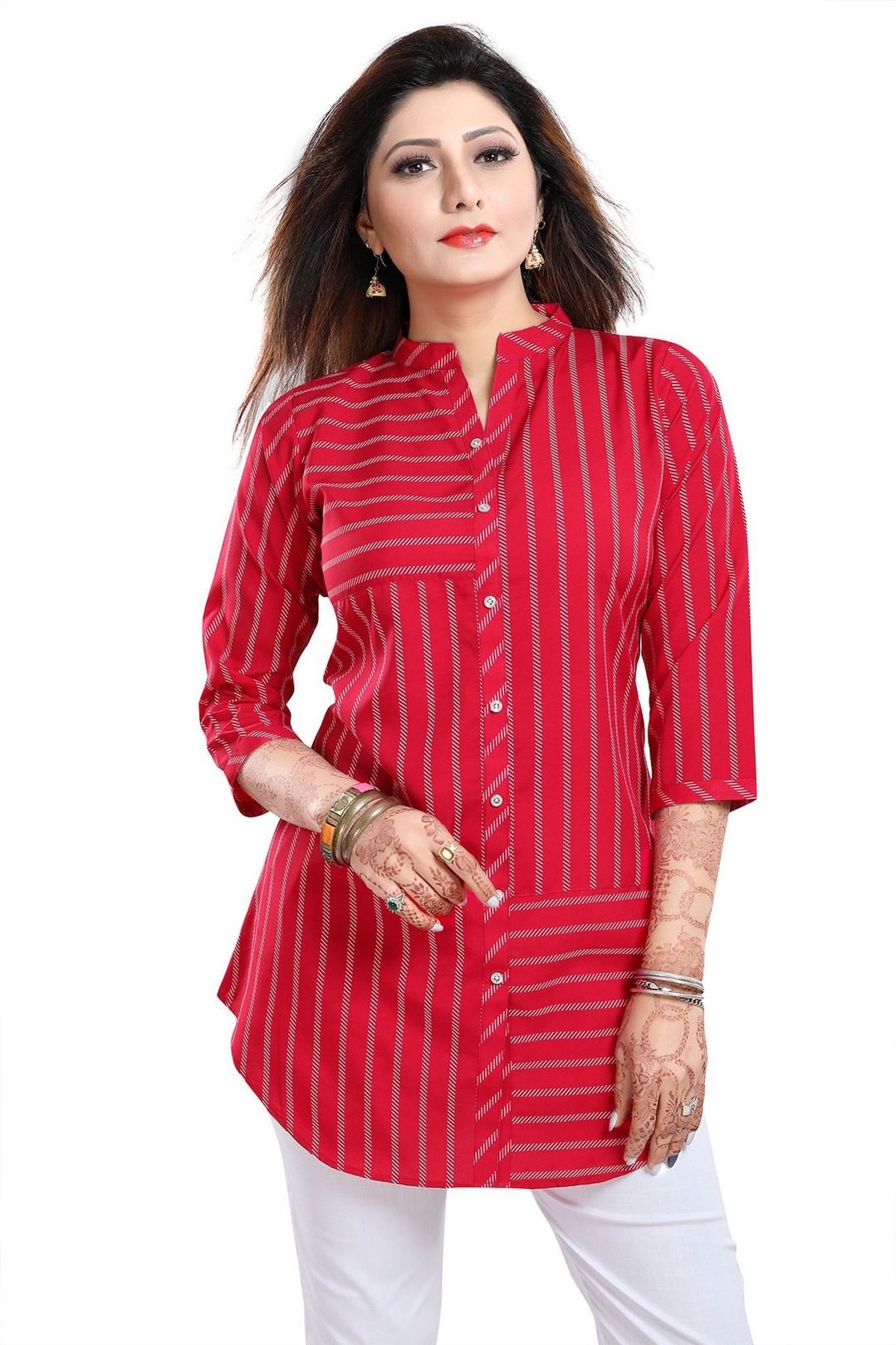 Exquisite Hot Pink Poly Crepe Short Tunic