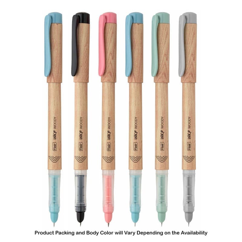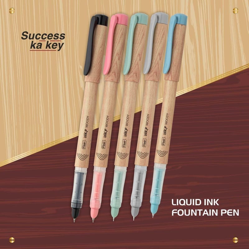 Experience smooth and elegant writing with the Flair Inky Woody Liquid Ink Fountain Pen. Comes with blue ink cartridges and a convenient ink converter, allowing you to refill your pen easily. Perfect for students, professionals, and fountain pen enthusiasts.