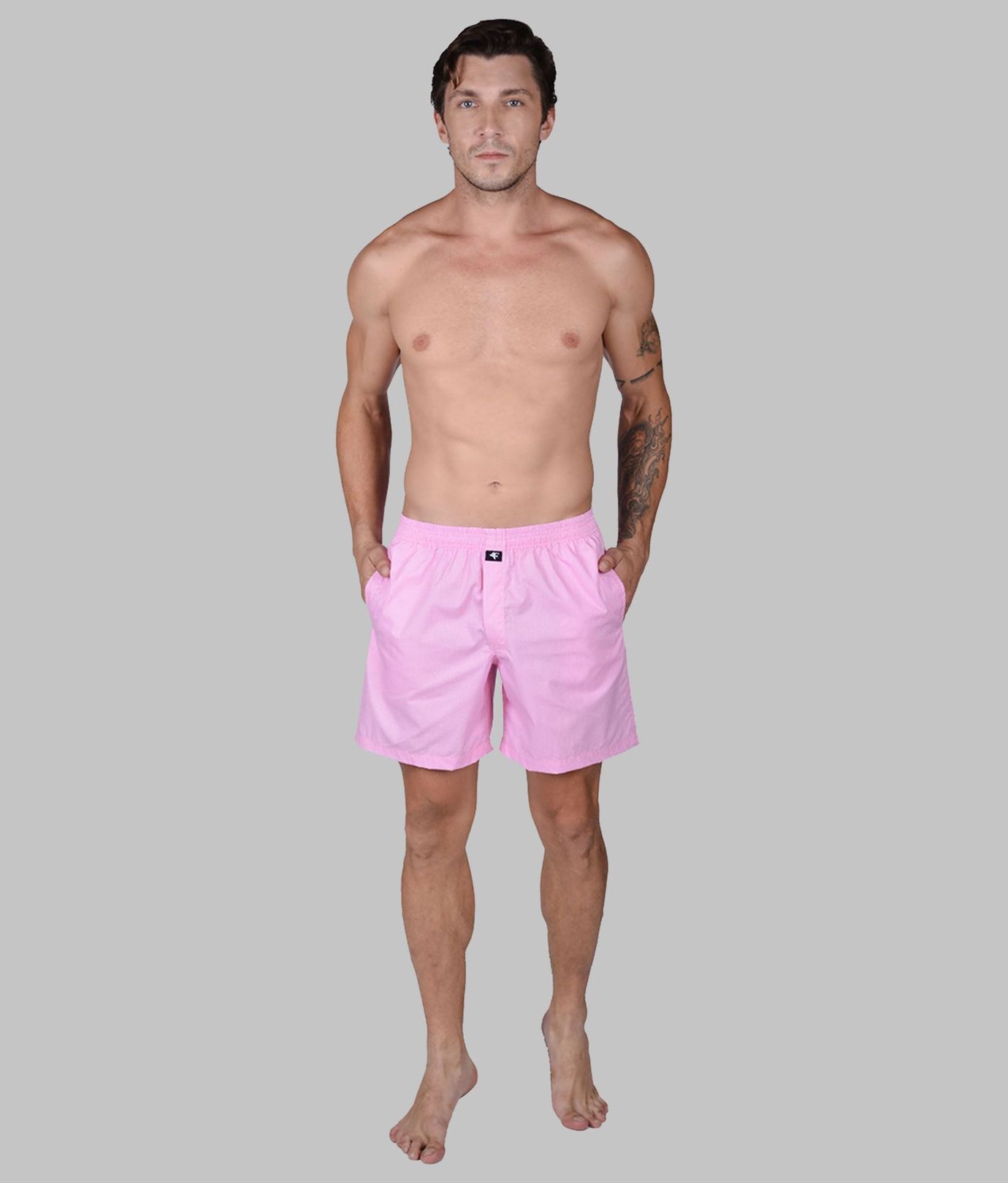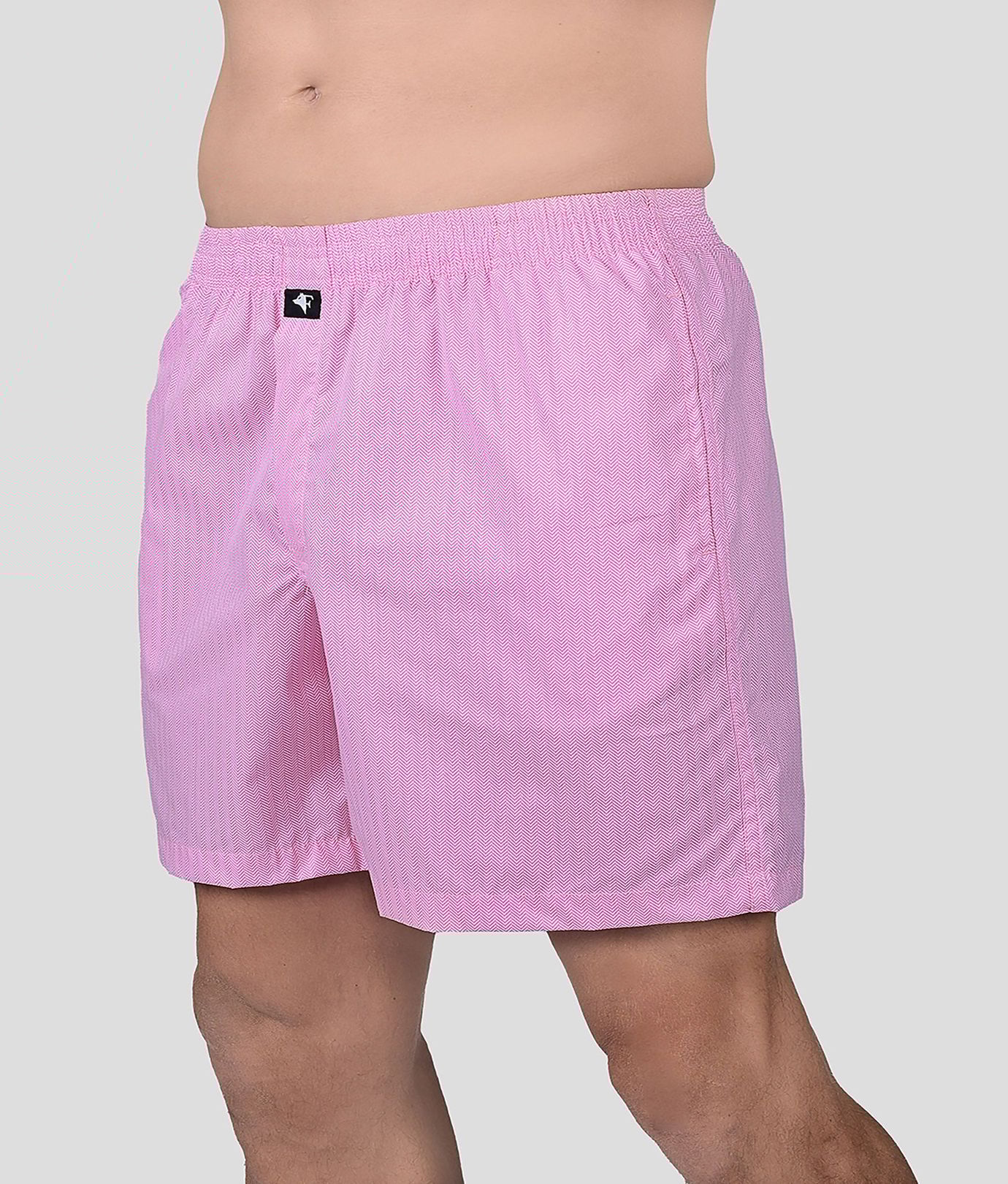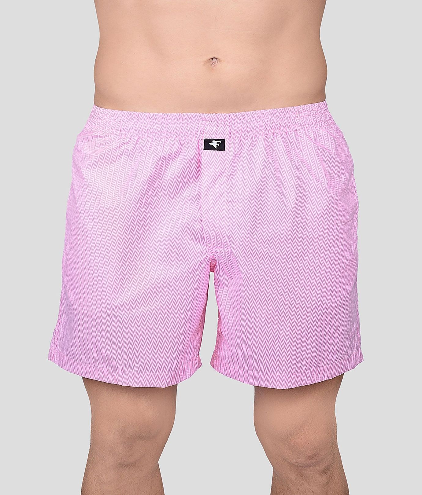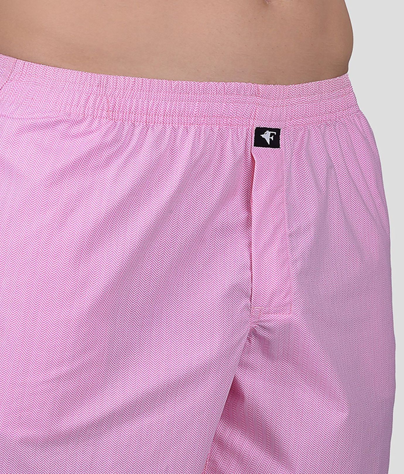 Frenchie Boksa Men'S Printed Cotton Boxer Shorts With Side Pockets - Wave Pink