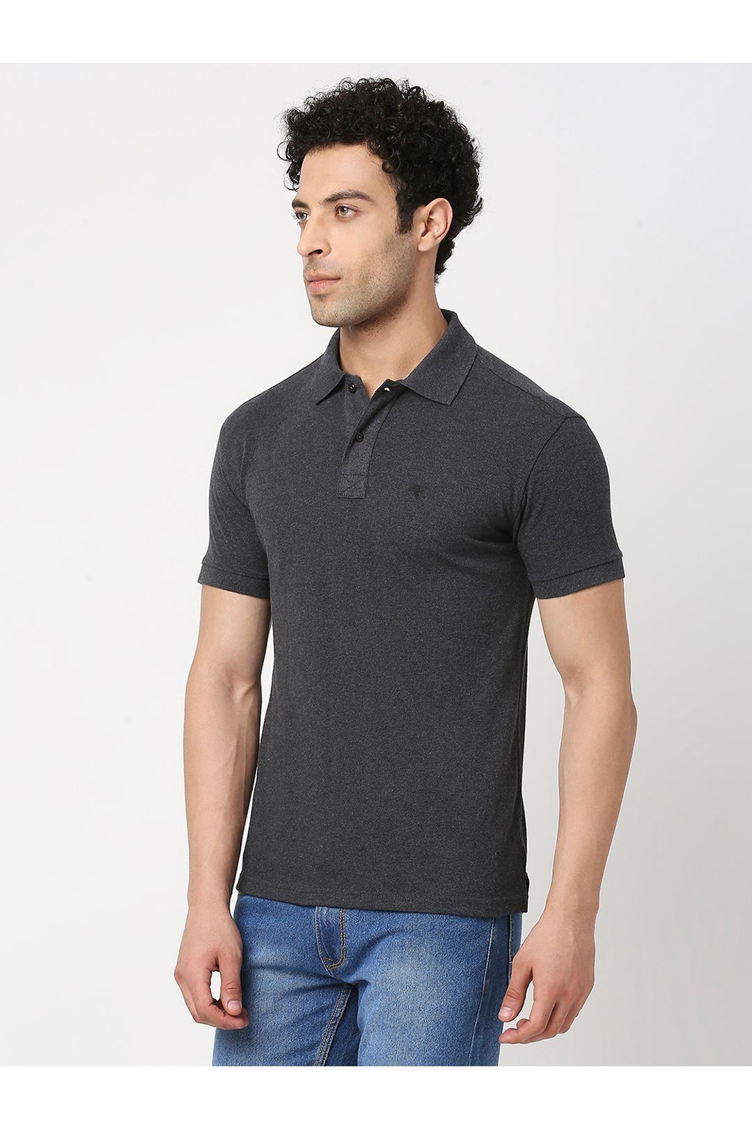 Tshirt for men, Solid with minimal brand logo print detail on left chest with regular length, Polo collar, Short regular sleeves, Short, Knitted pure cotton fabric, Button closure