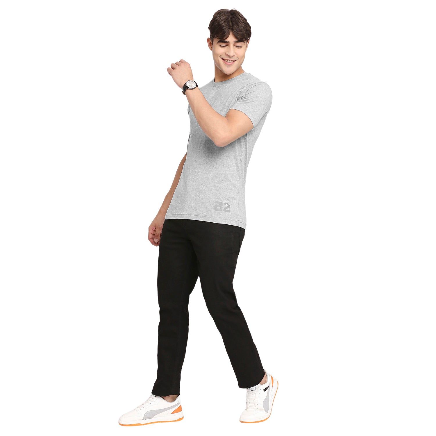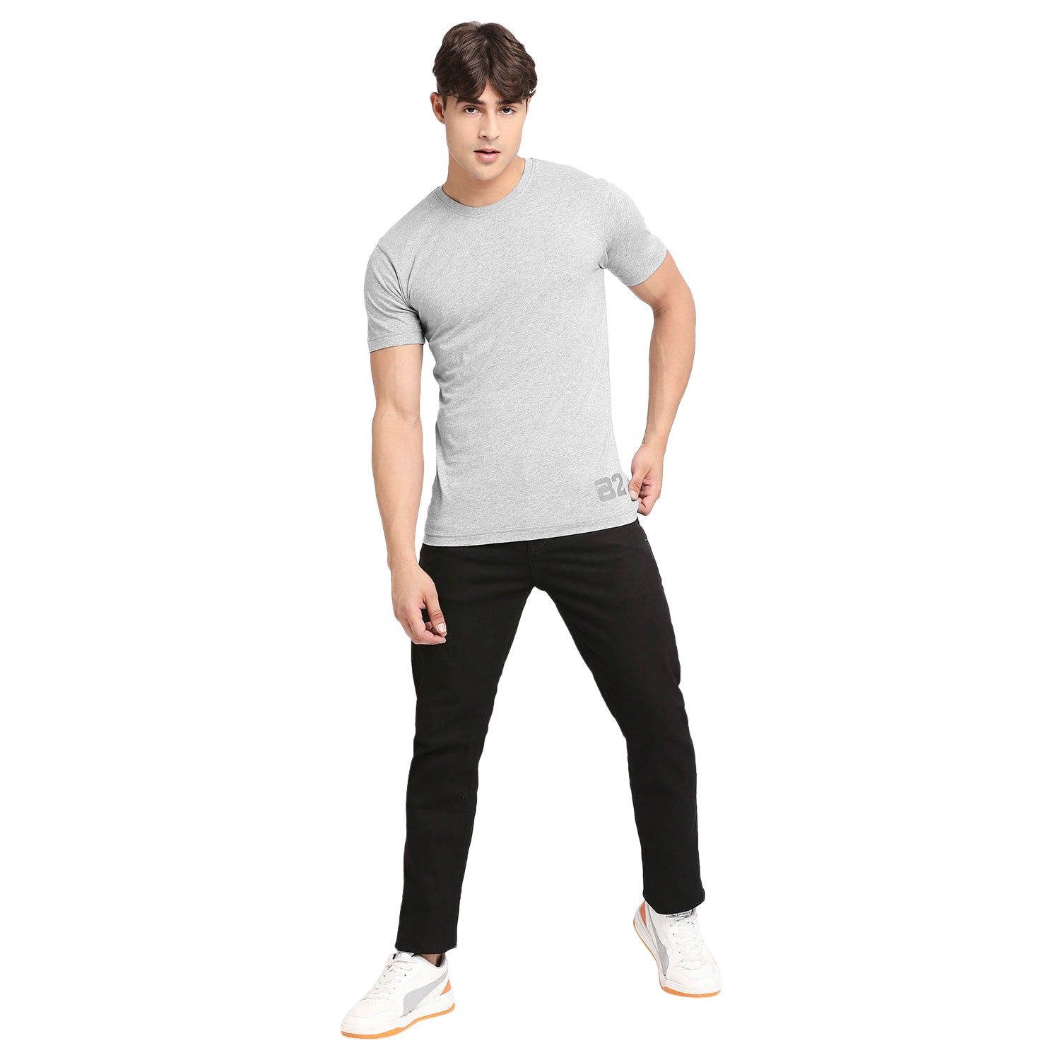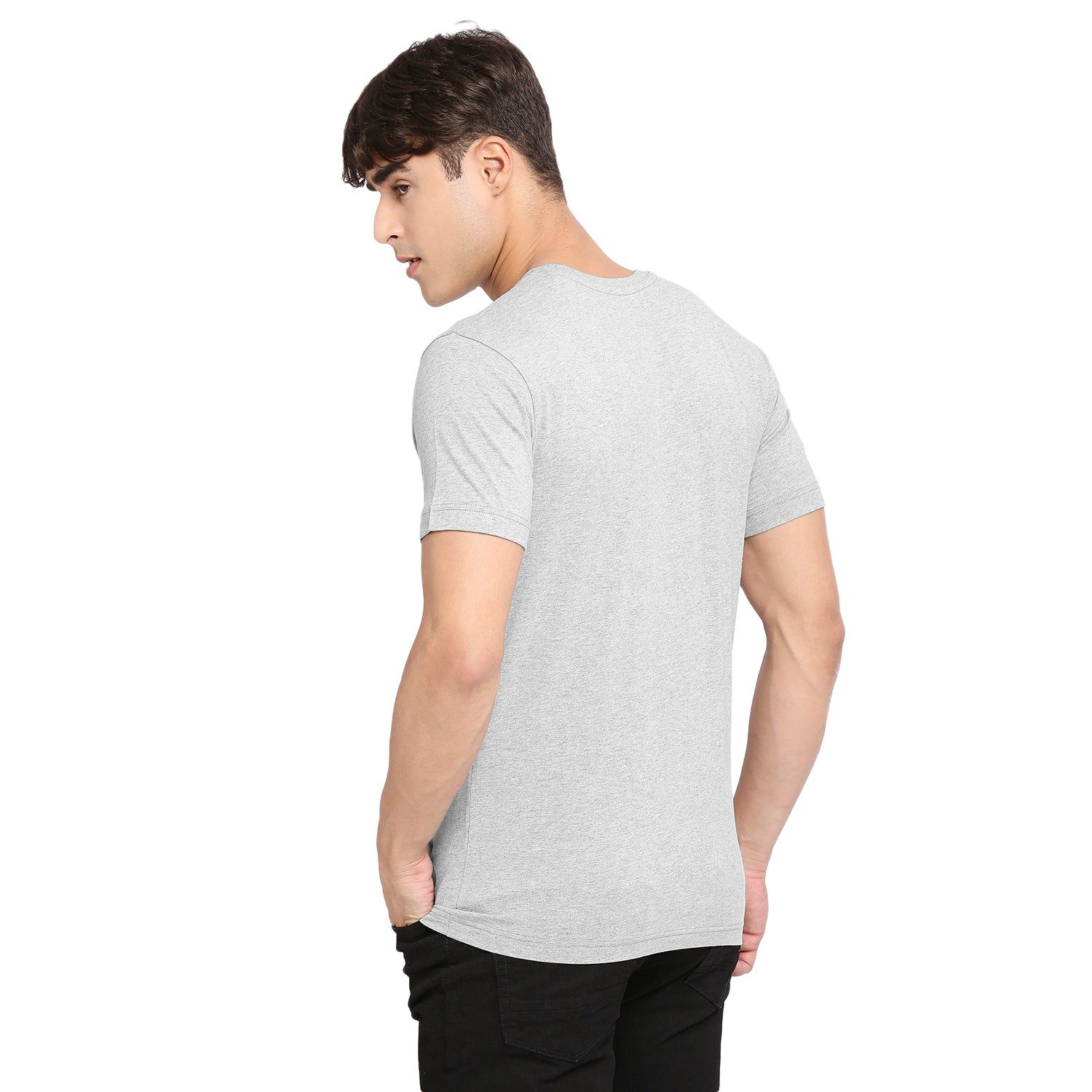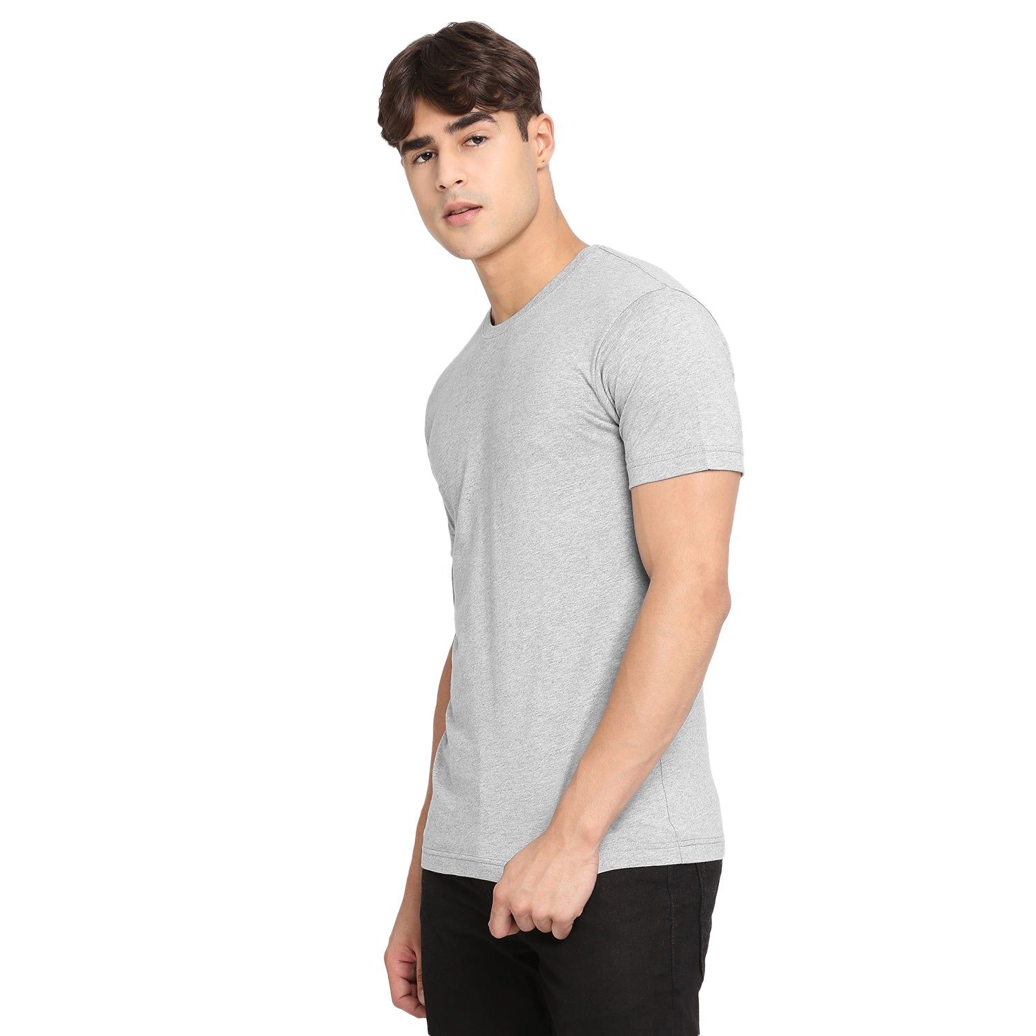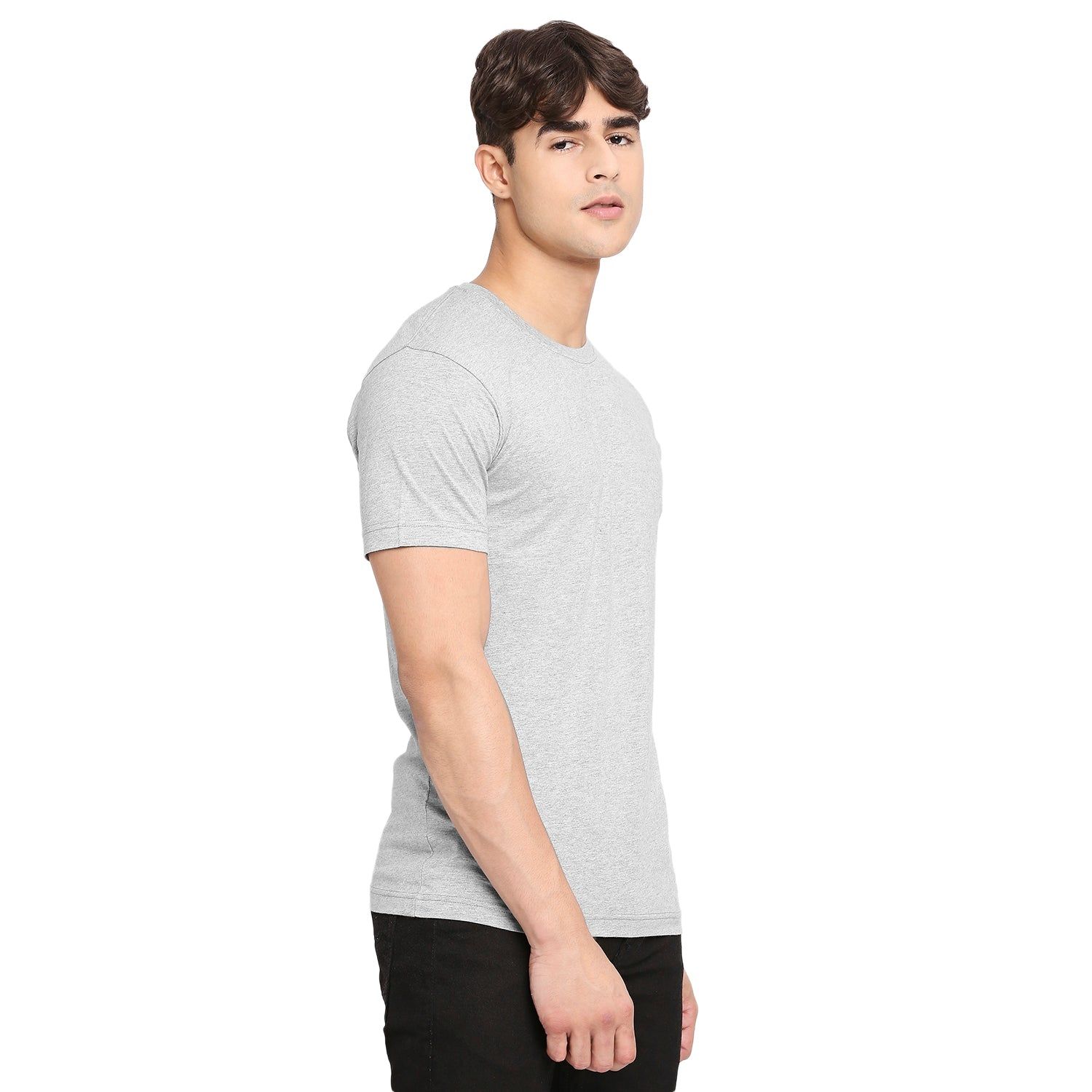 Achieve effortless style with this men's grey melange round neck T-Shirt from Frenchie. Made from comfortable, breathable fabric, the subtle m lange provides a neat texture which elevates any outfit. A classic wardrobe staple, it is an essential for the modern man's wardrobe.