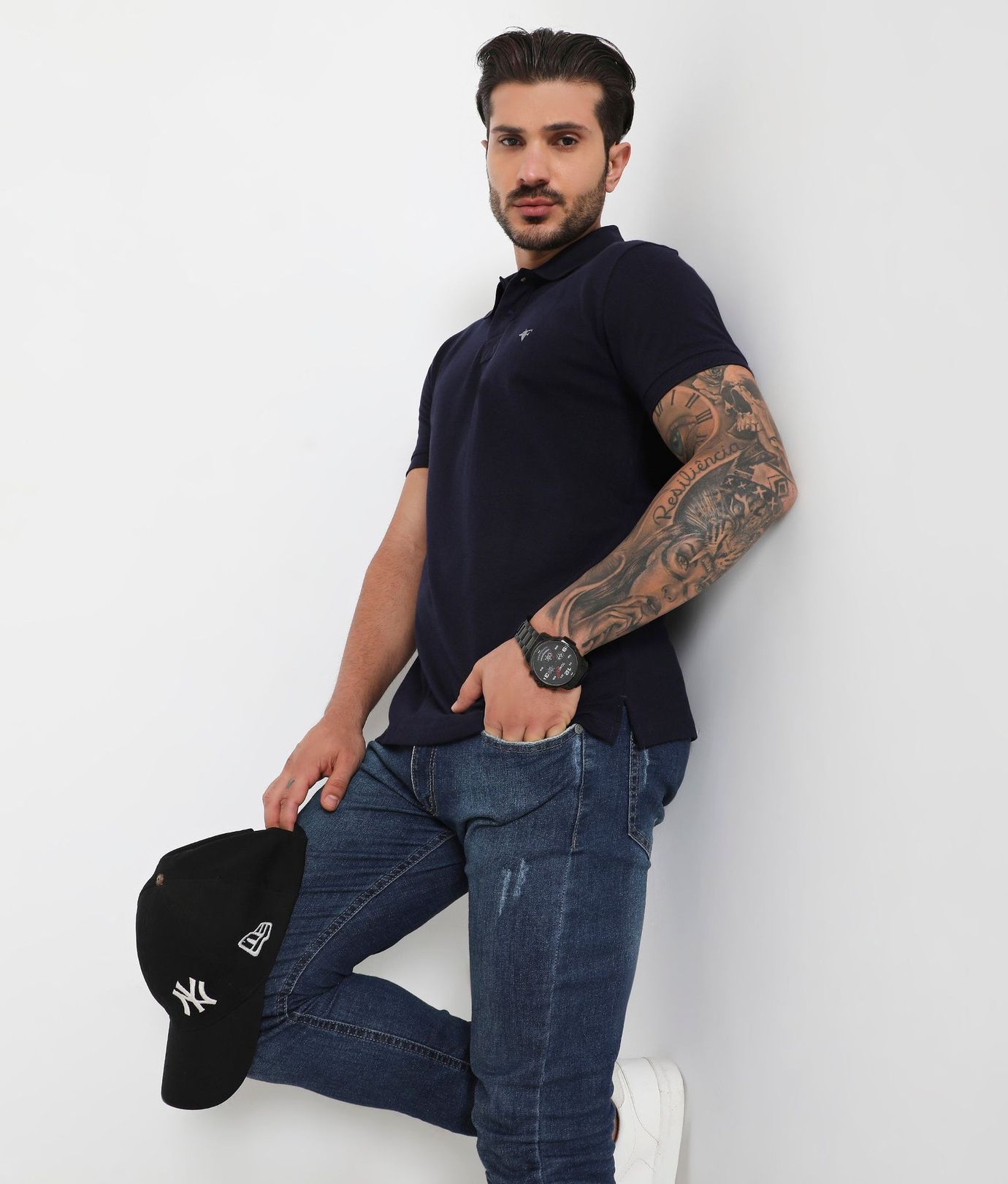 Frenchie Men Navy Blue Classic Cotton Polo T-Shirt
