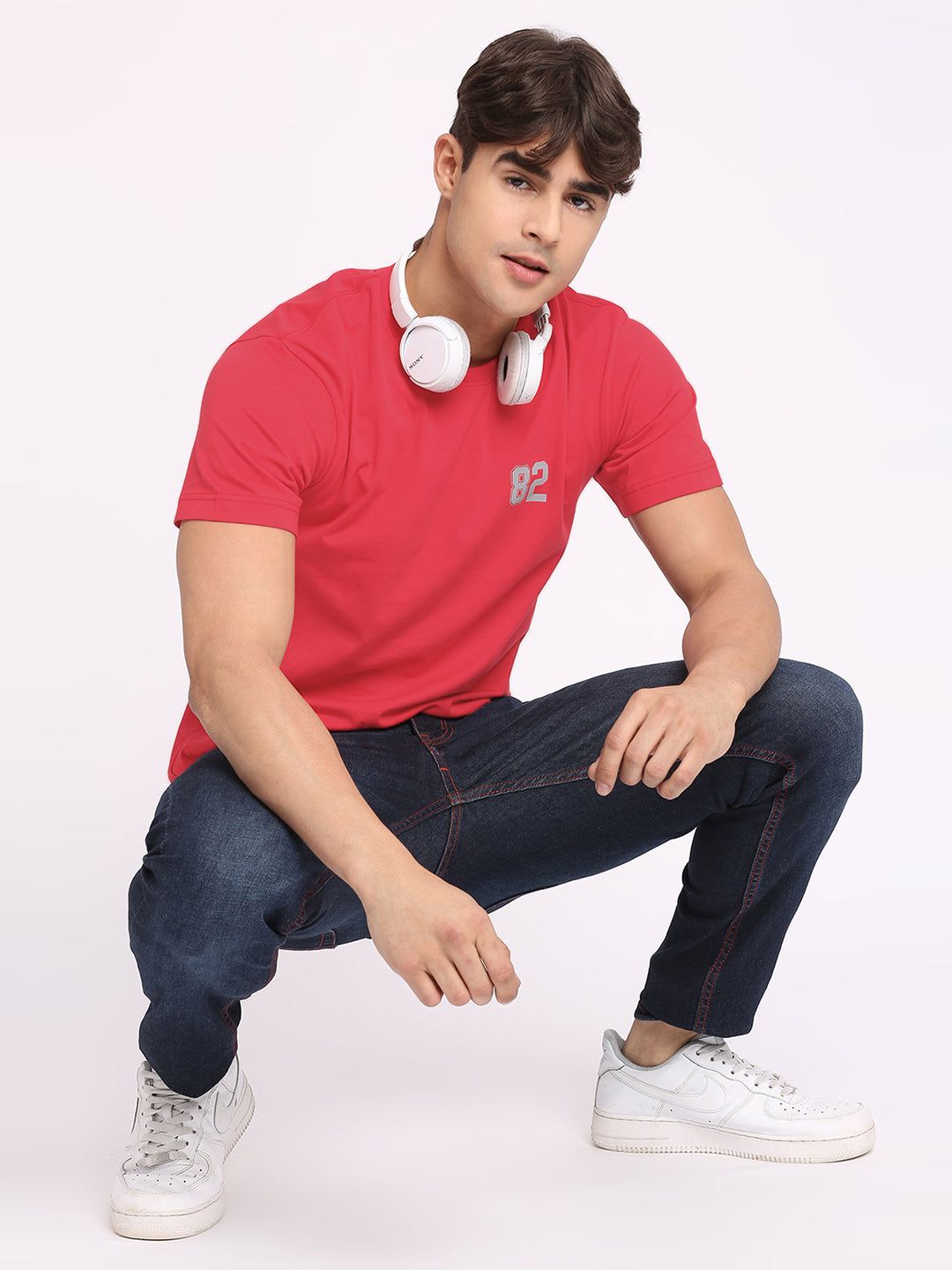 It features a classic round neck for a timeless look, perfect for any fashion-savvy hipster! Plus, it's a vibrant red ? you can't go wrong with a bold wardrobe choice like this!