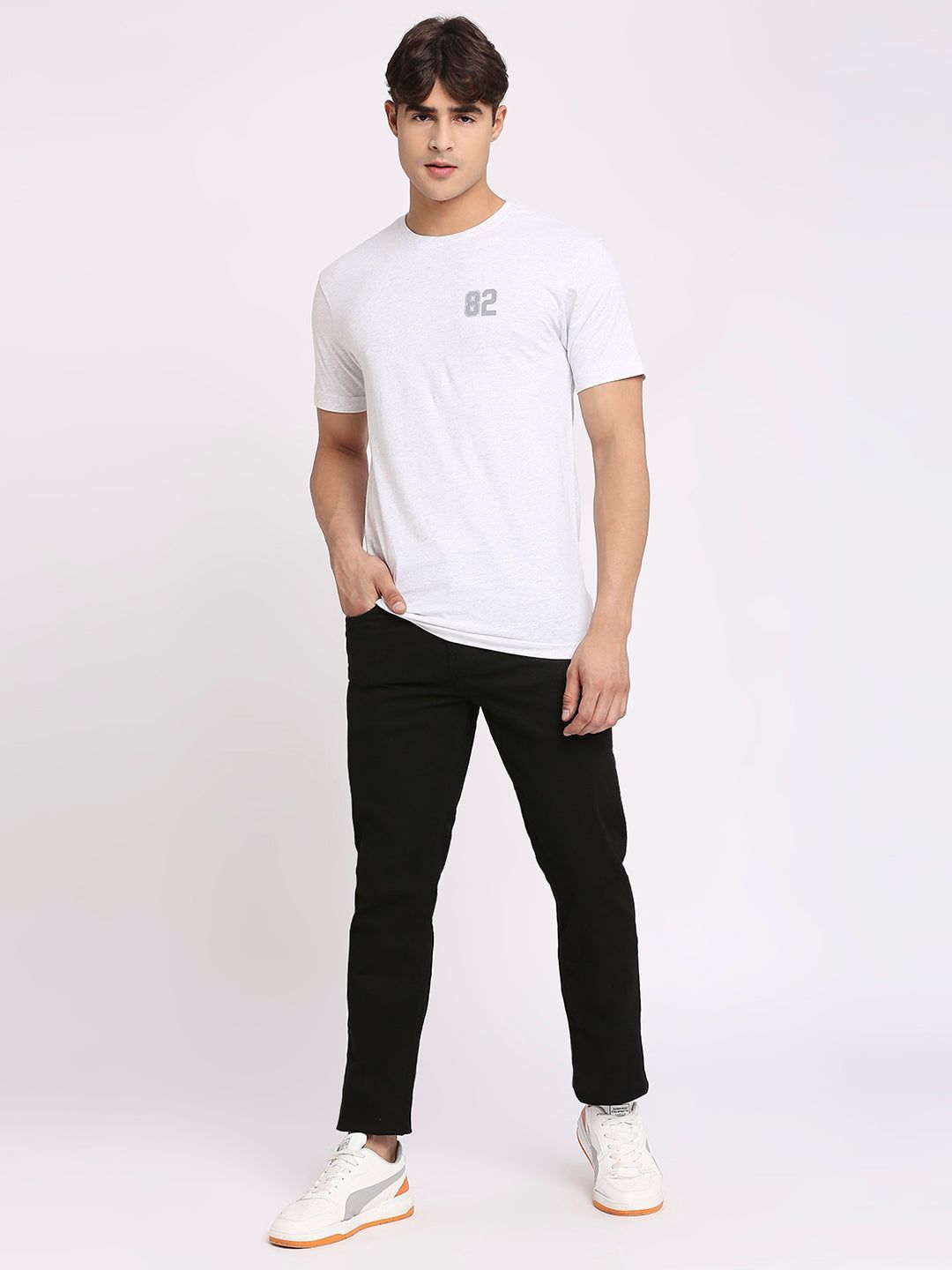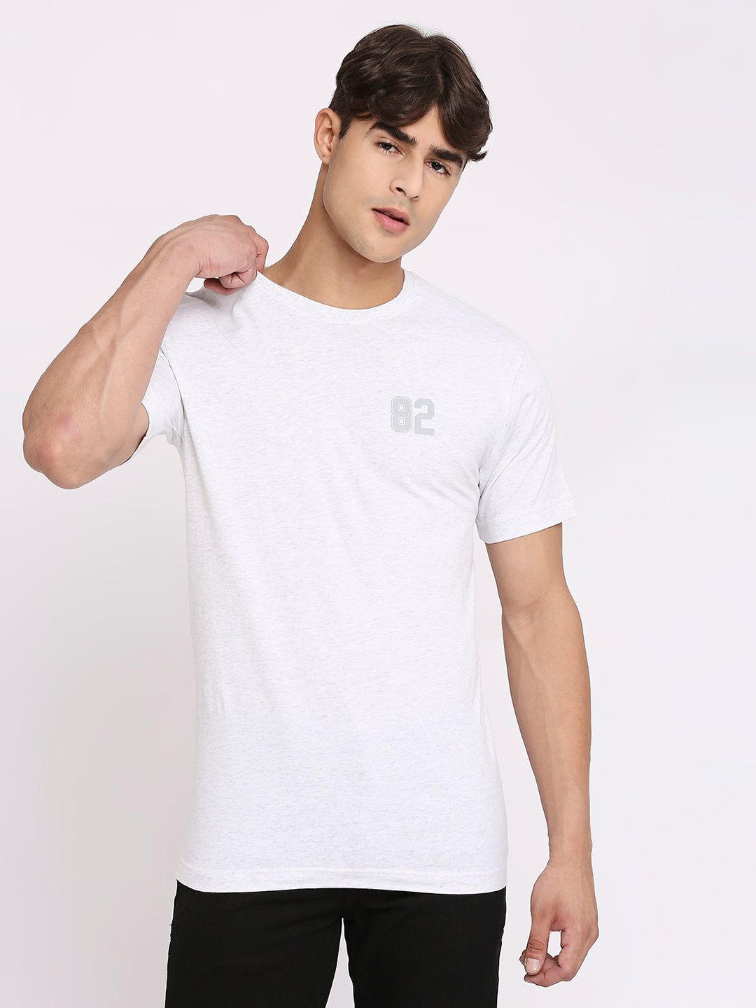 Experience a sophisticated style with this Frenchie Men's White Melange Round Neck T-Shirt, a luxe garment crafted with a classic round neckline and a melange effect. Perfect for the fashion-conscious man, this premium t-shirt is the ideal choice for making a timeless impression.