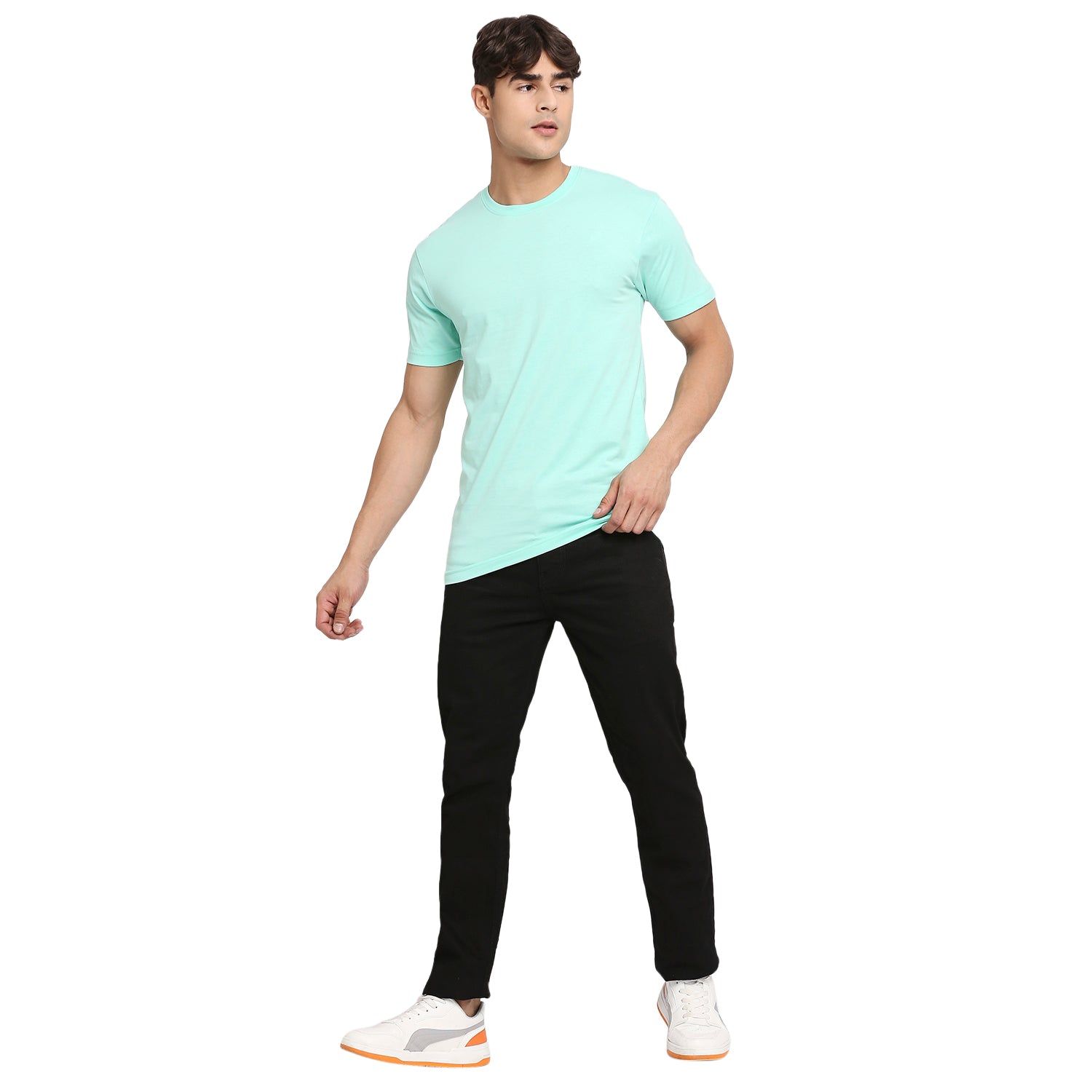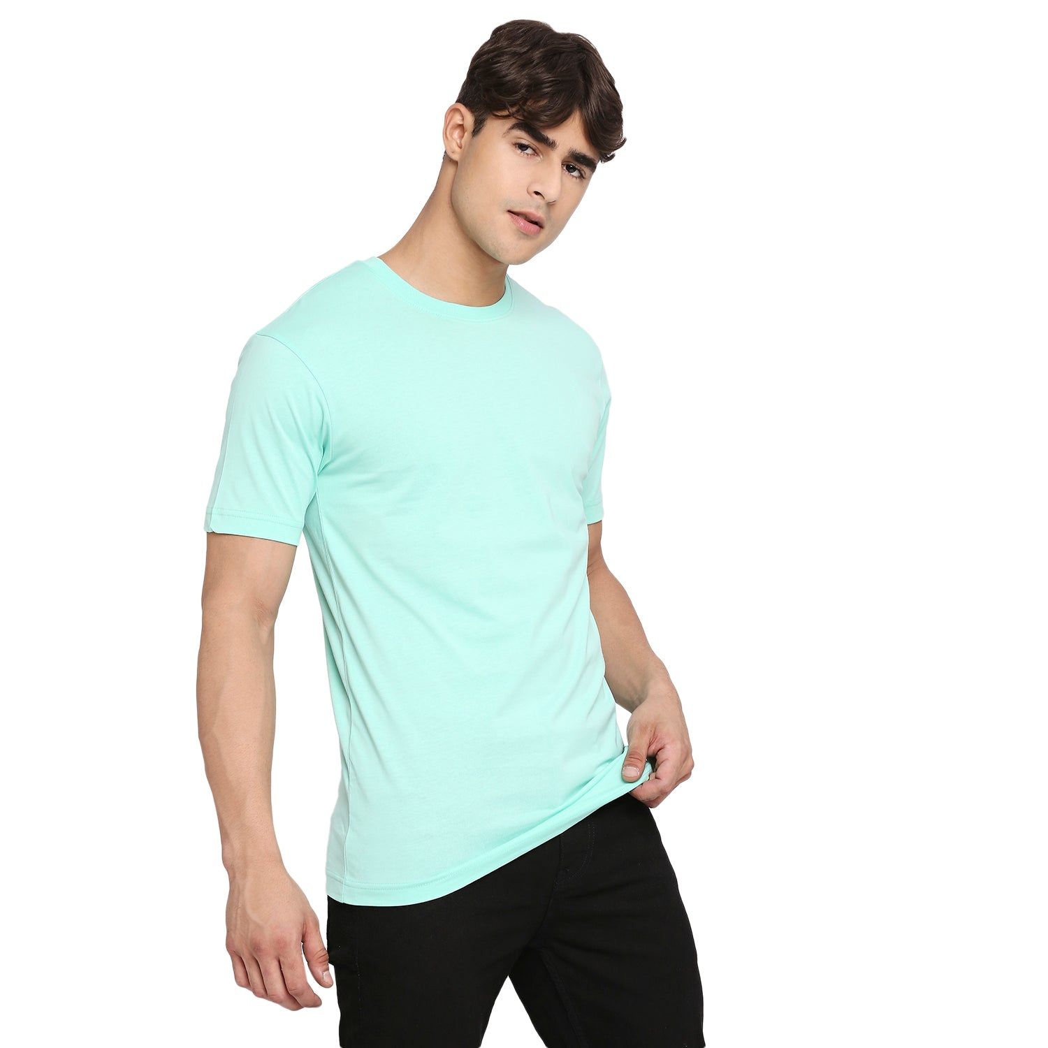 66d589d54131da047c692d71Frenchie Mint Blue Pure Cotton Round Neck T-Shirt For MenFrenchie Mint Blue Pure Cotton Round Neck T-Shirt For Men